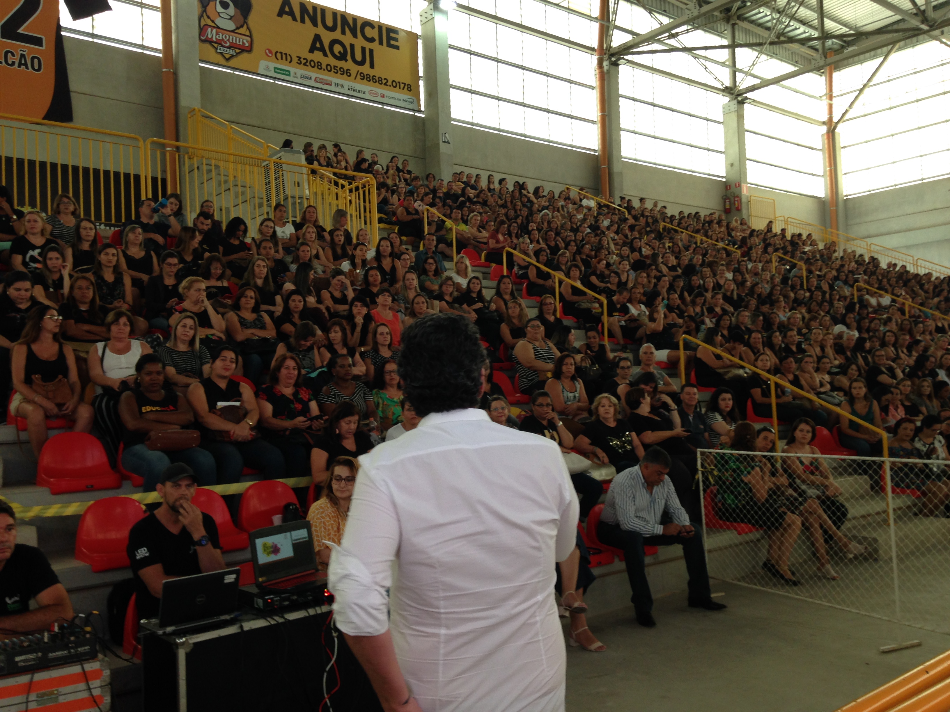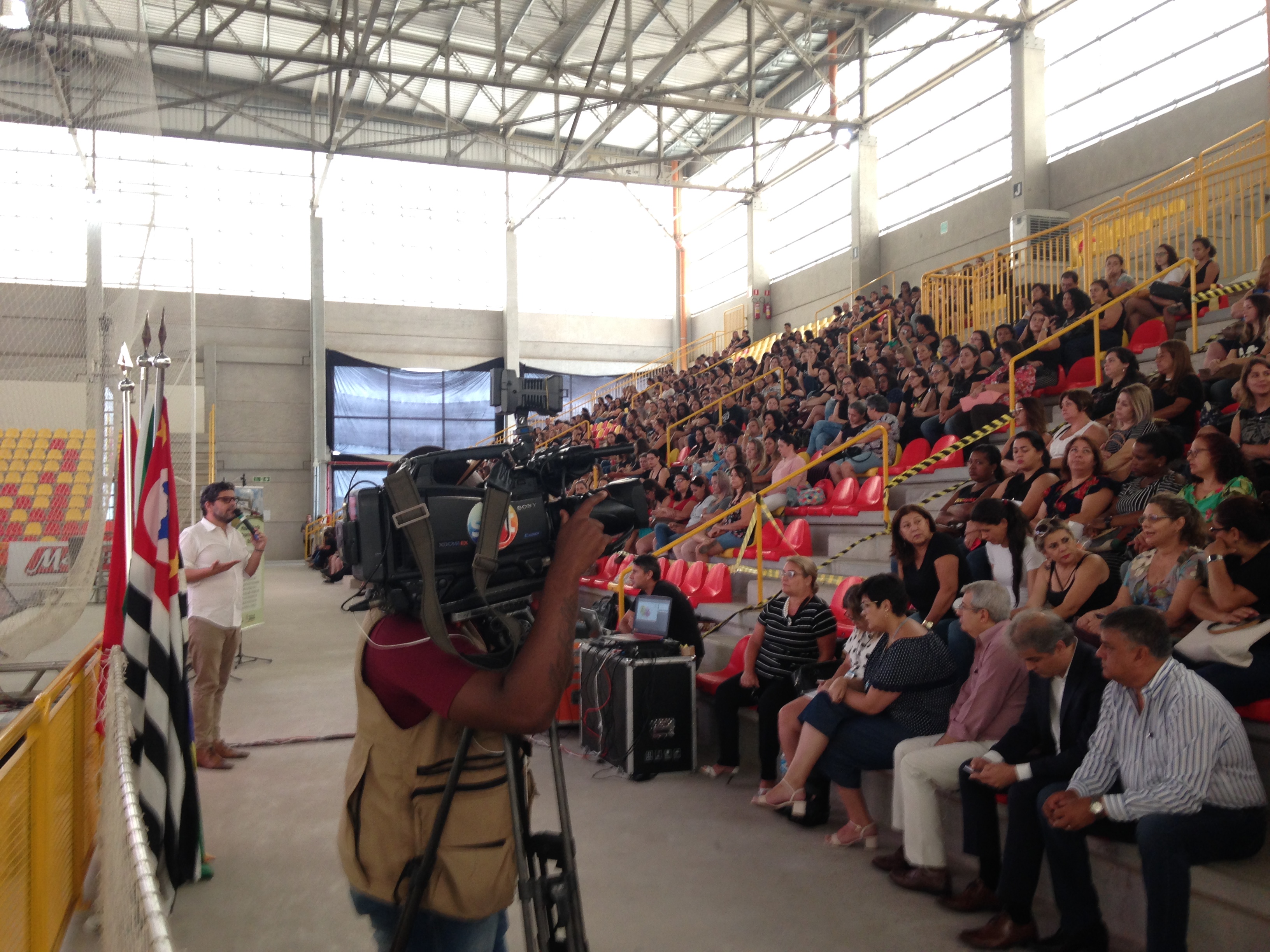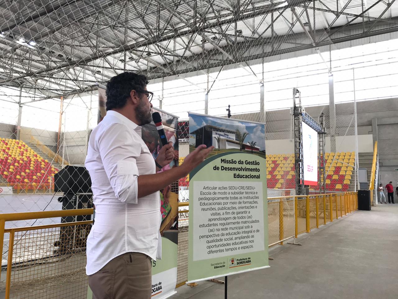 A Secretaria da Educação (Sedu) realizou nesta segunda-feira (4), uma apresentação técnica sobre o Sistema de Ensino Sesi para todos os professores da rede municipal. O evento foi divido em dois turnos, contando com cerca de 1.300 professores de manhã e mais 1.300 à tarde. Participaram também orientadores pedagógicos e supervisores de ensino.