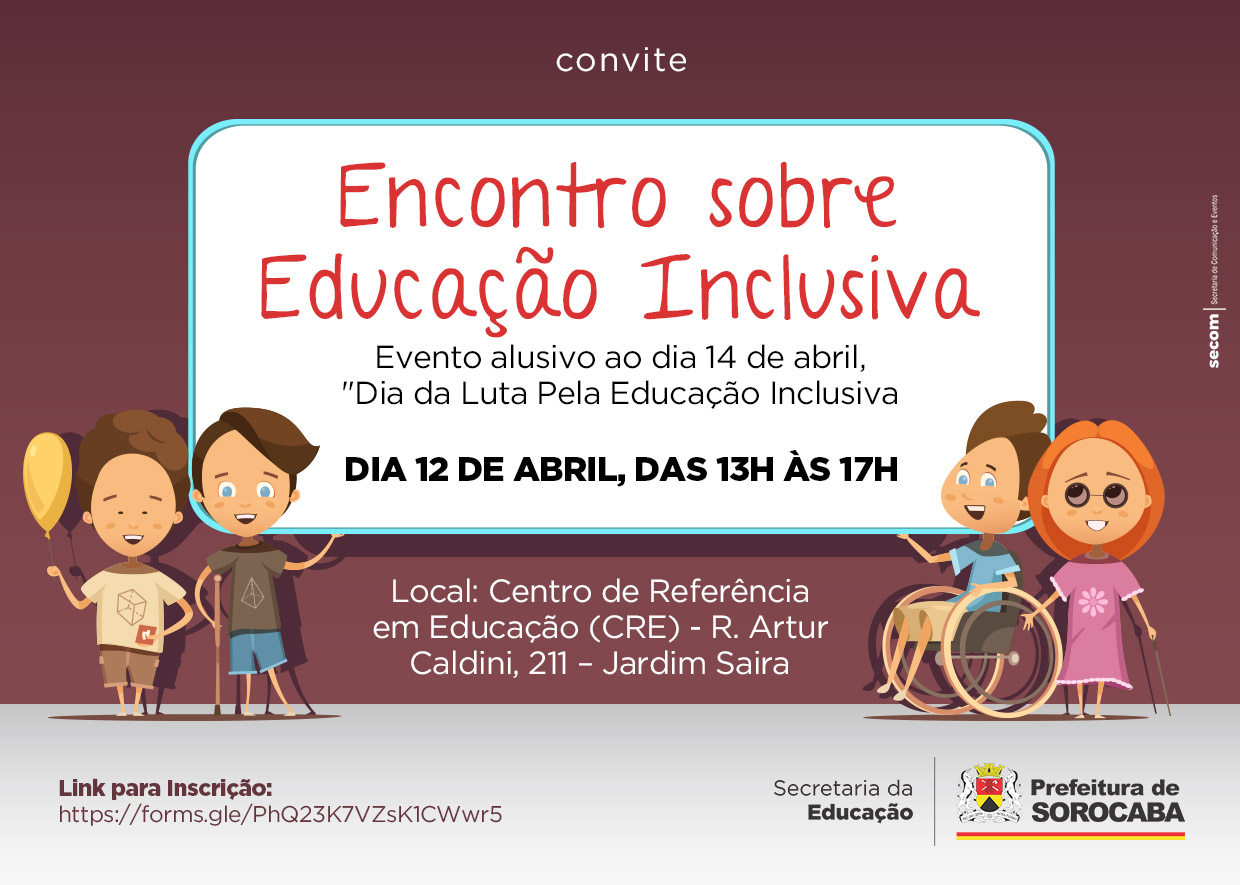 A Secretaria da Educação (Sedu) realizará na sexta-feira, dia 12 de abril, das 13h às 17h, o ‘Encontro sobre Educação Inclusiva’ no Centro de Referência em Educação (CRE). O evento é alusivo ao Dia Nacional de Luta Pela Educação Inclusiva celebrado em 14 de abril. A ação tem como objetivo promover reflexões sobre o contexto de diversidade na Educação.