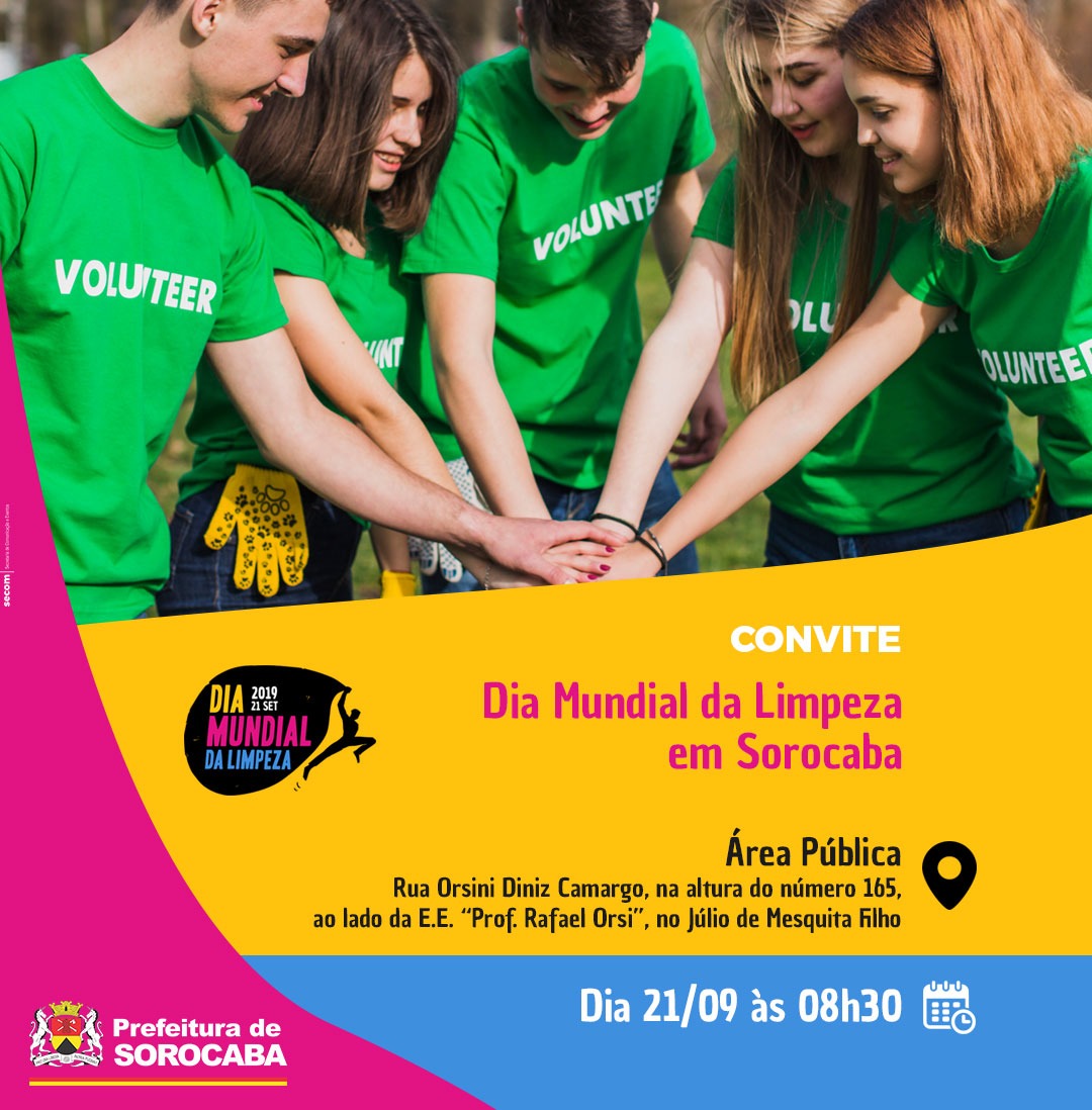 Outra ação importante serão os Mutirões de Limpeza que ocorrerão no sábado (21), a partir das 8h30, em dois locais da cidade: às margens do rio Sorocaba, entre a Praça da Biodiversidade e o Parque das Águas) e área pública do Piazza Di Roma, ao lado da E.E. “Rafael Orsi”. As atividades integram a programação do Dia Mundial da Limpeza (World Cleanup Day), uma ação que visa promover a mobilização de voluntários para a limpeza de suas cidades, bairros, praias, praças e parques em todo o mundo.