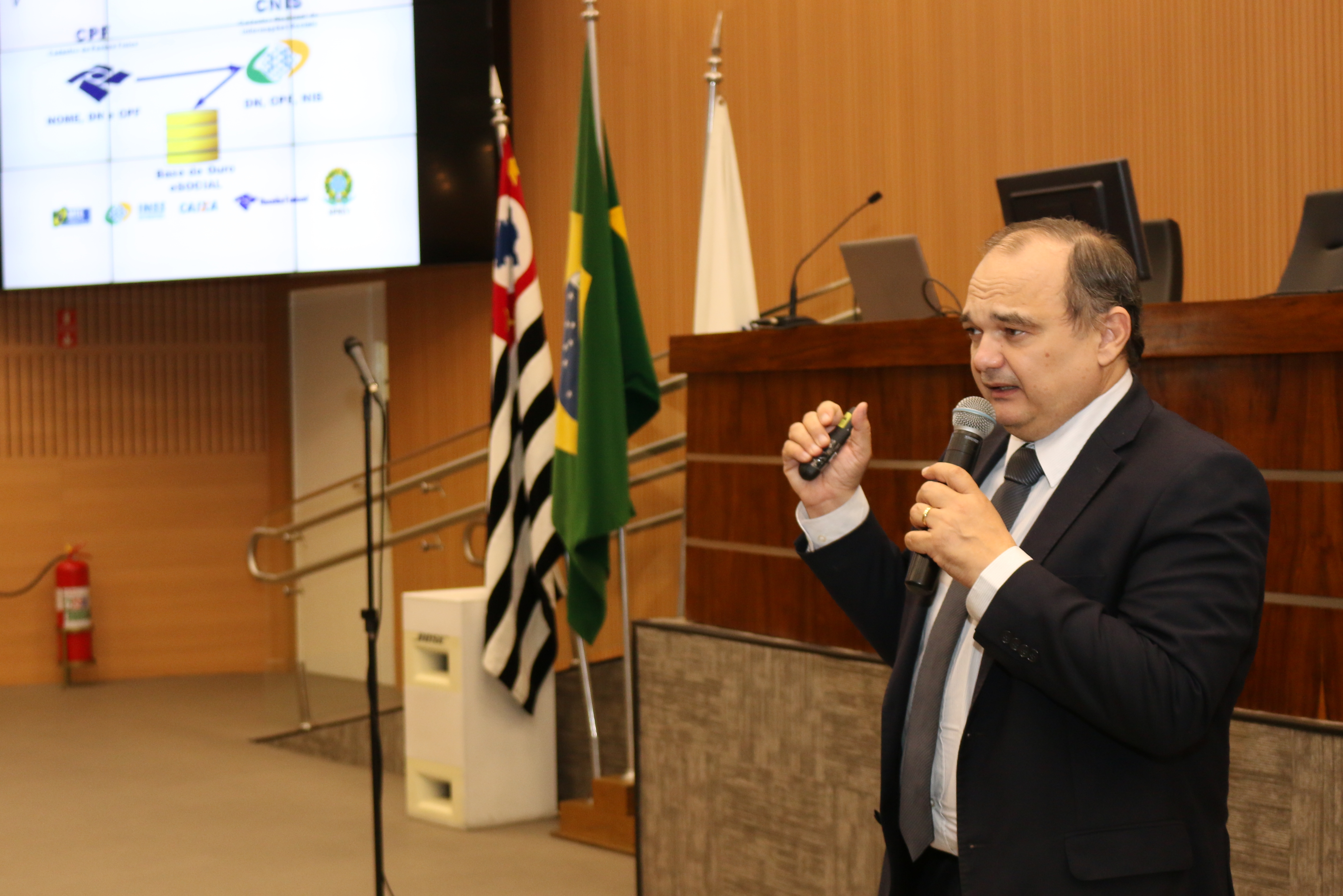 A área de saúde ocupacional e segurança do trabalho foi tema da palestra de Orion Sávio Santos de Oliveira, analista de políticas sociais da Secretaria de Previdência do Ministério da Fazenda. Orion discorreu sobre as informações de segurança do trabalho que já são executadas pelos empregadores e que deverão ser feitas exclusivamente na plataforma do eSocial, como o PPP (Perfil Profissiográfico Previdenciário) e CAT (Comunicado de Acidente de Trabalho), além de destacar quais procedimentos deverão ser feitos para servidores celetistas, estatutários e estagiários.