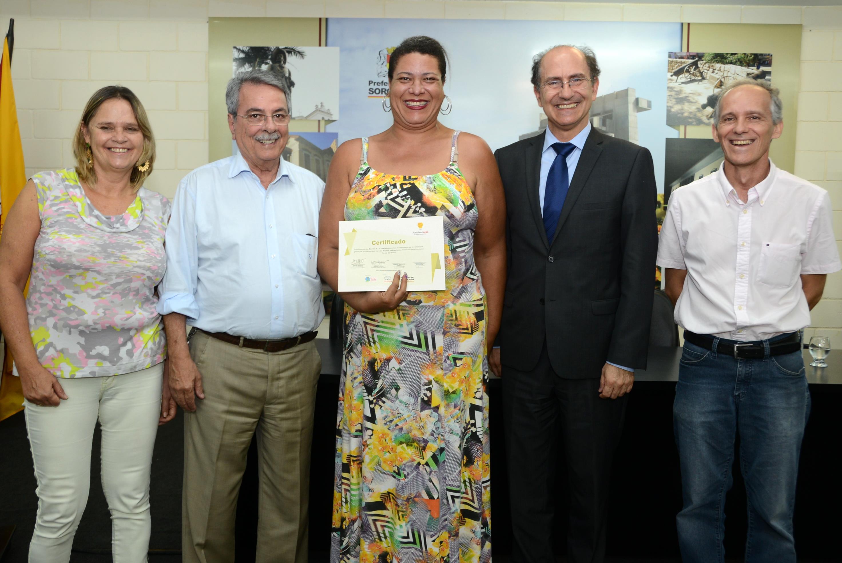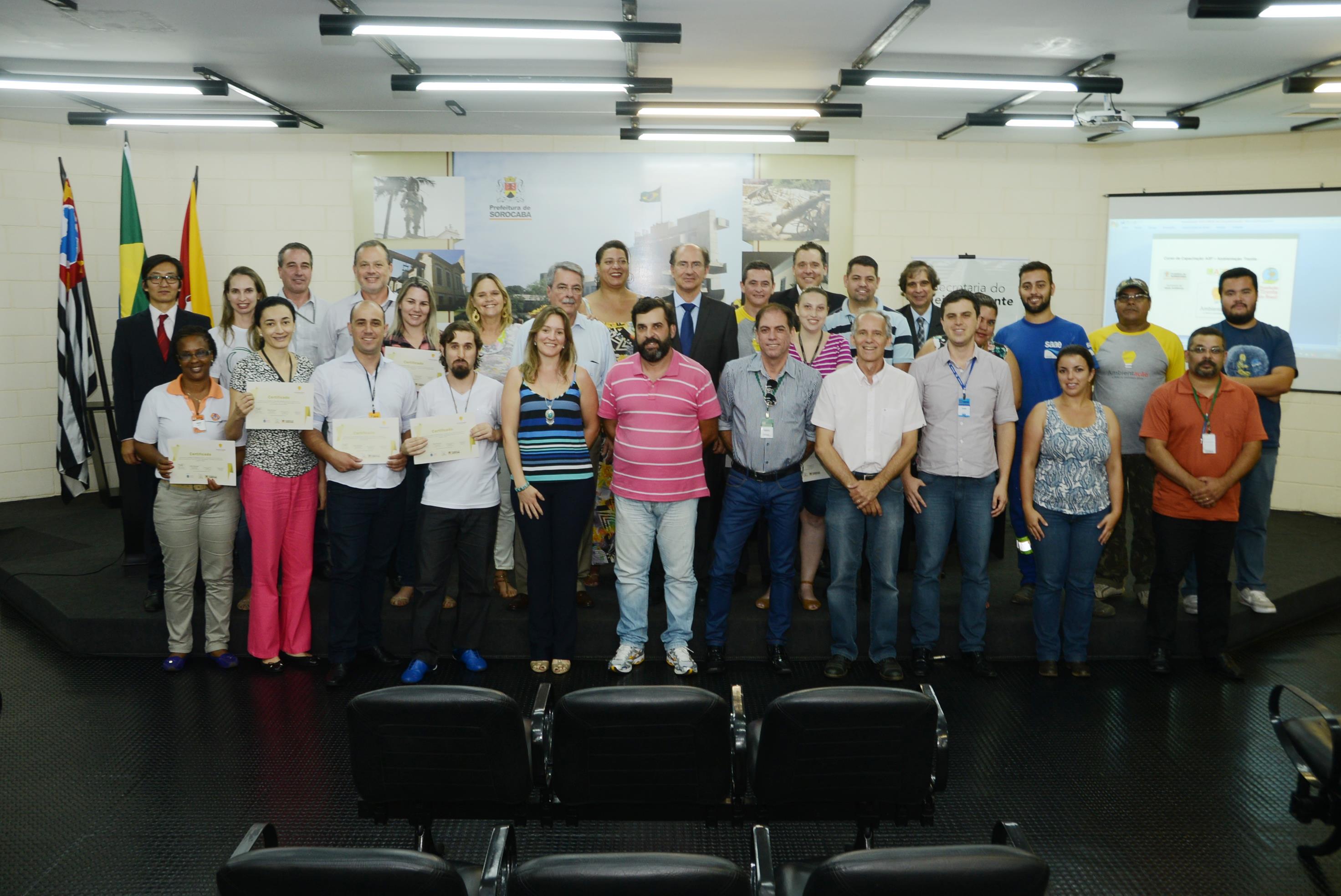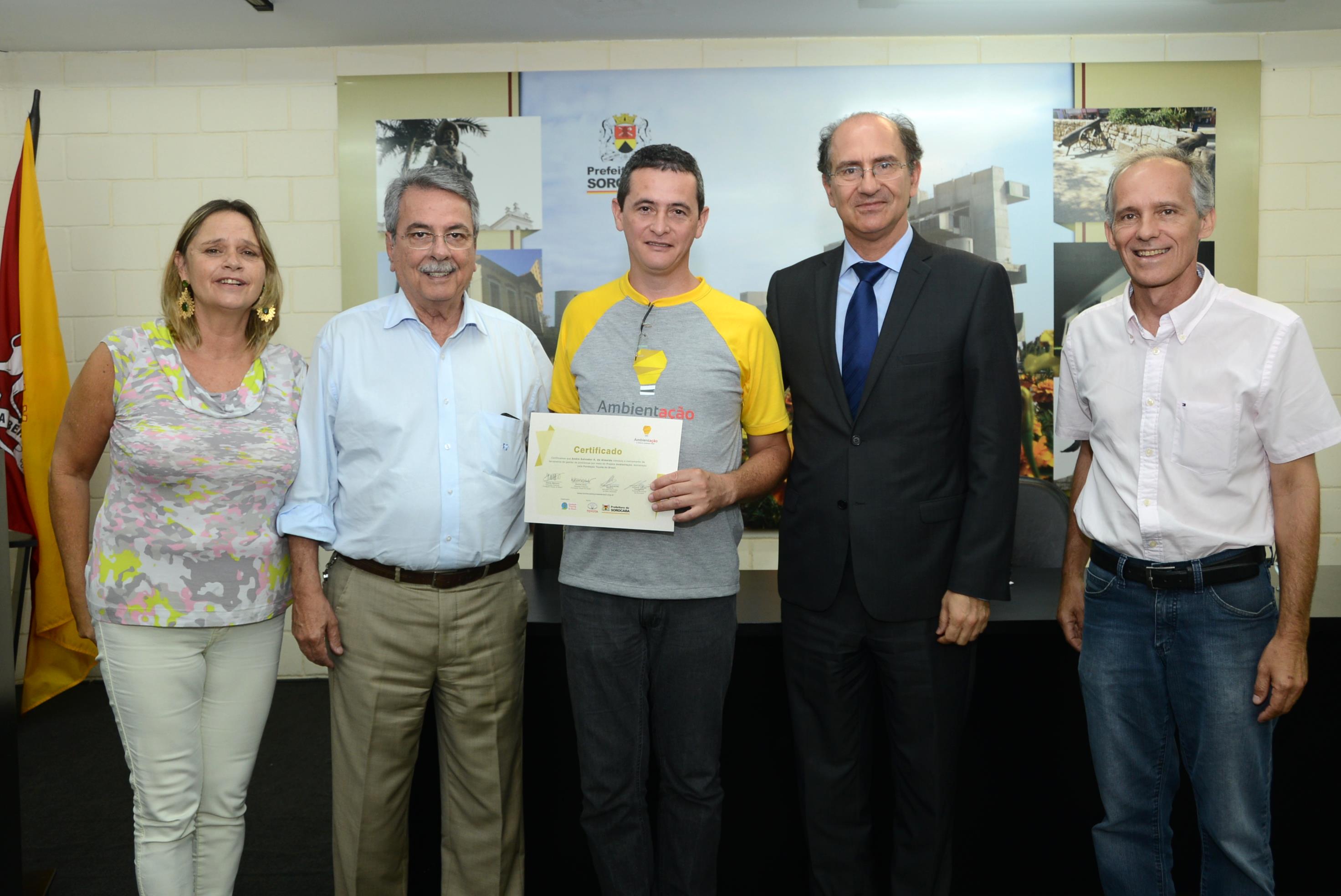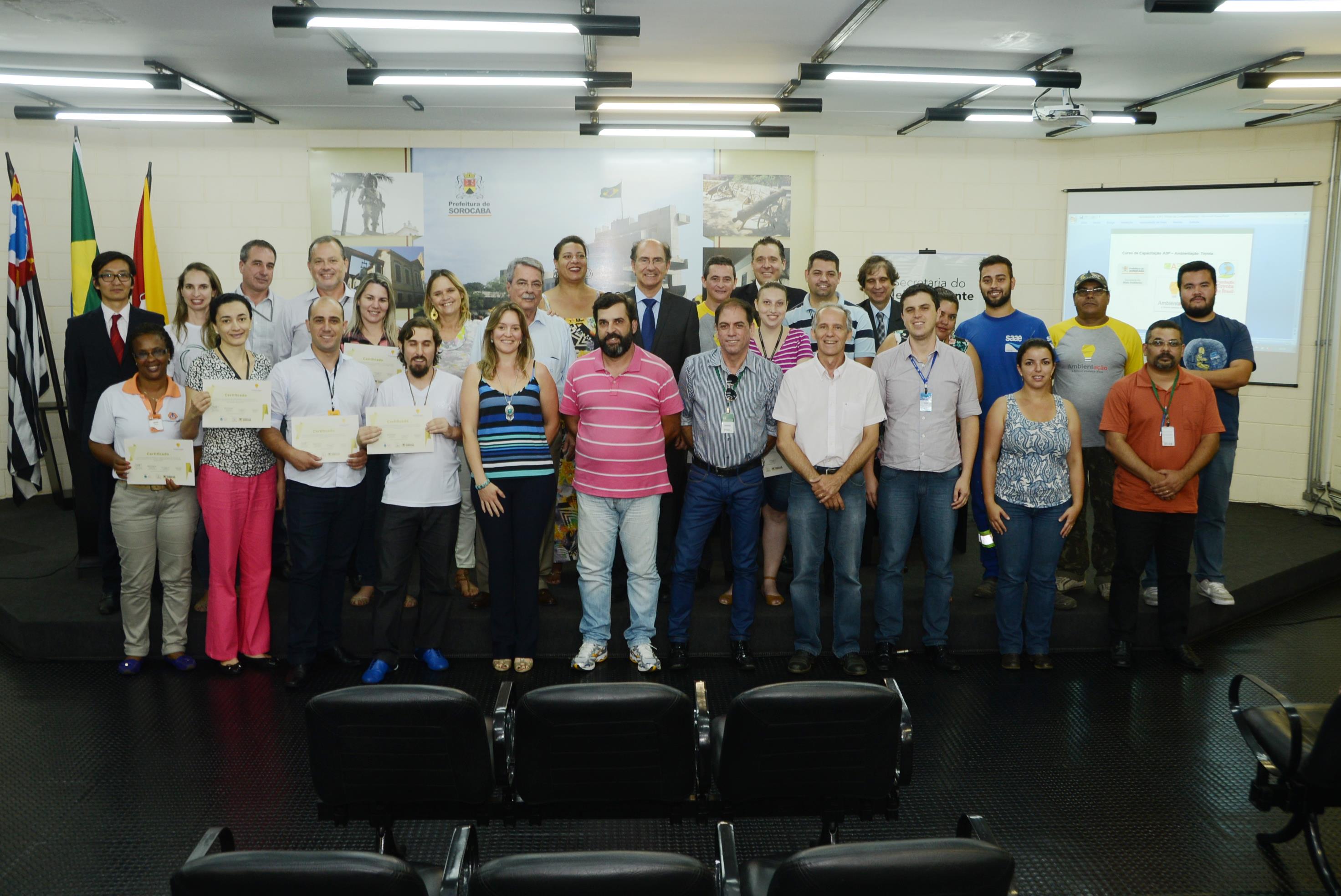 O prefeito de Sorocaba, Antonio Carlos Pannunzio, participou na tarde desta terça-feira (15), da entrega de certificados para os servidores públicos municipais participantes do Projeto Ambientação, finalizado na última semana e promovido pela Prefeitura de Sorocaba, por meio da Secretaria do Meio Ambiente (Sema) e em parceria com a Fundação Toyota do Brasil. O evento ocorreu no Salão de Vidro do Paço.