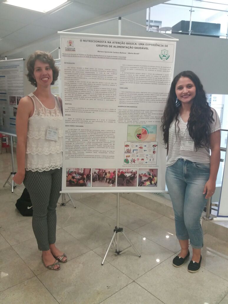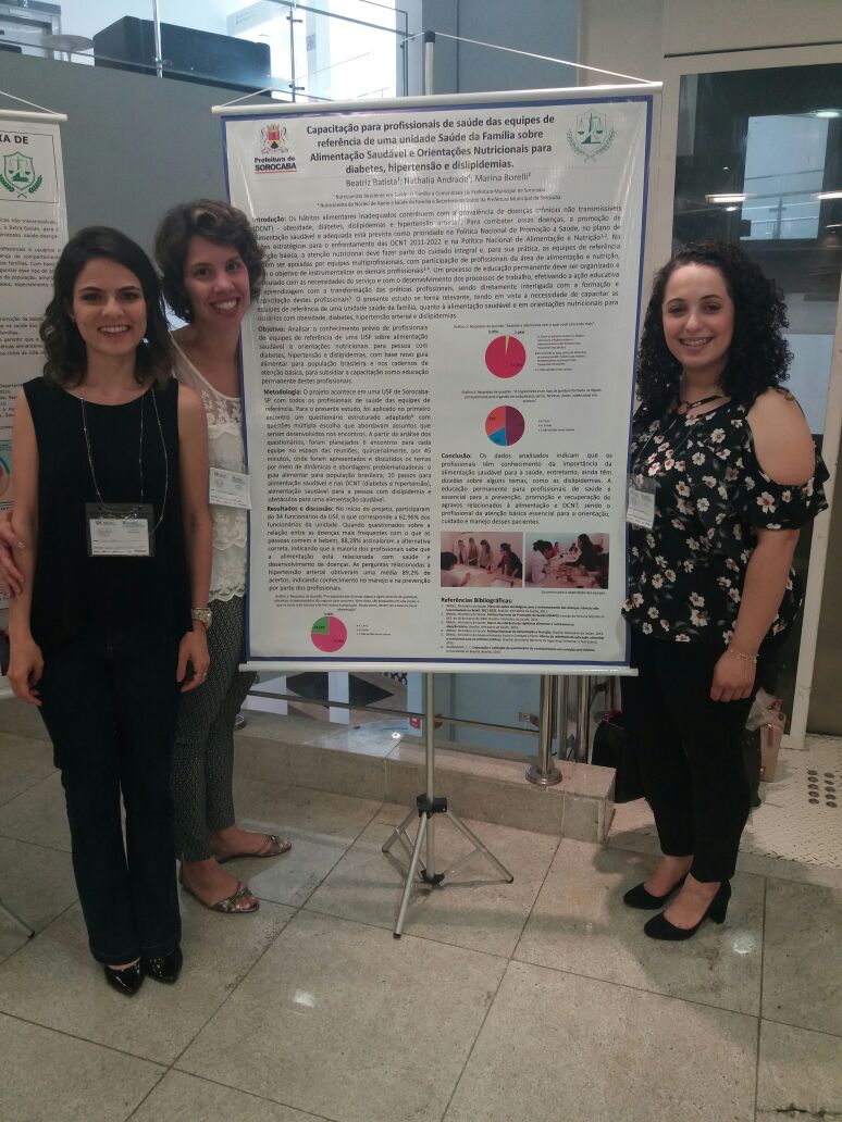 O trabalho premiado “Capacitação para profissionais de saúde das equipes de referência de uma Unidade Saúde da Família sobre Alimentação Saudável e Orientações Nutricionais para diabetes, hipertensão e dislipidemias” faz parte do projeto de intervenção das residentes Beatriz Batista e Nathália Andrade realizado na USF Habiteto. Outro trabalho apresentado no encontro pela equipe de Nutrição sorocabana (residente Mariana Barbosa e nutricionista Marina) foi “O Nutricionista na Atenção Básica: Uma Experiência de Grupos de Alimentação Saudável”.