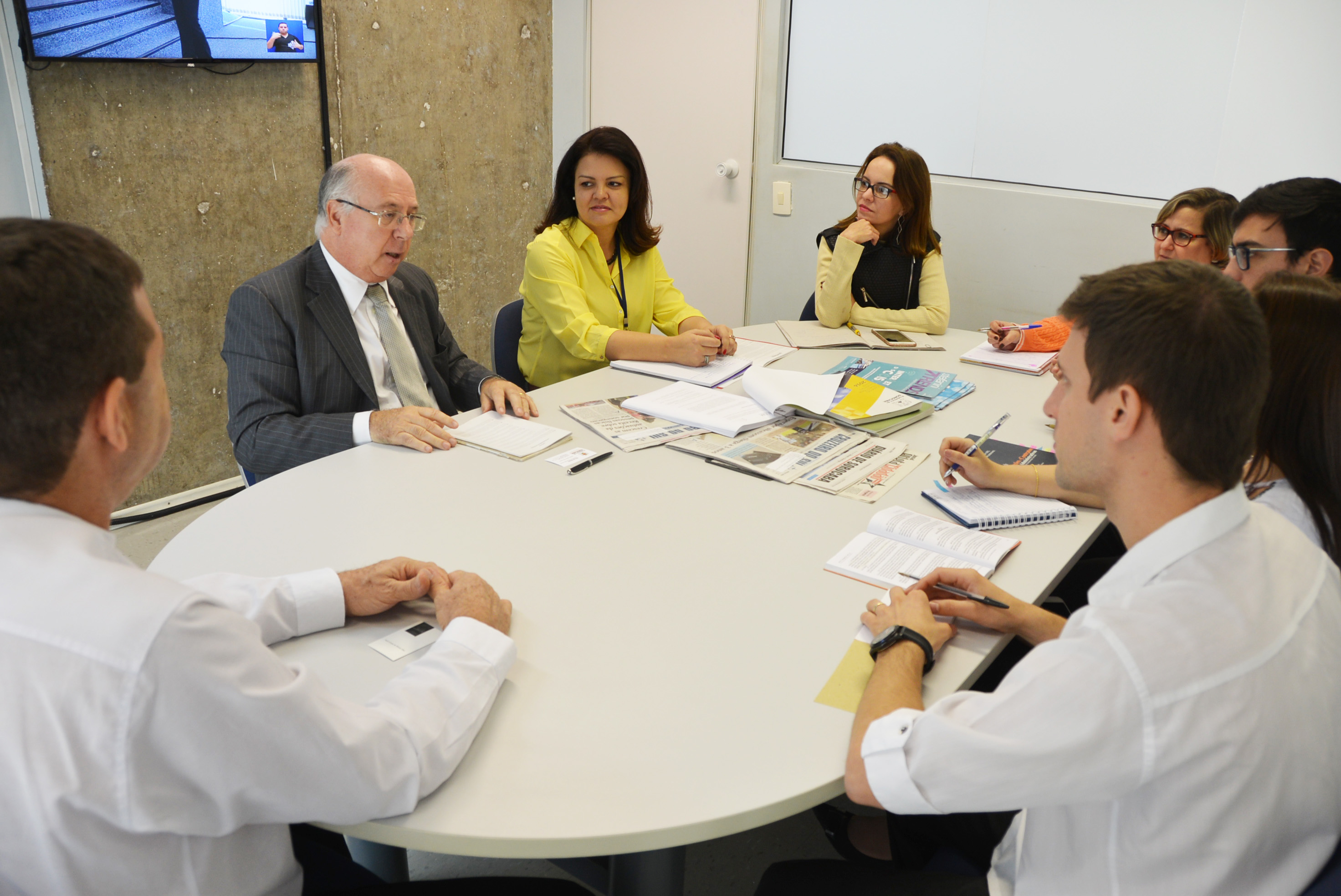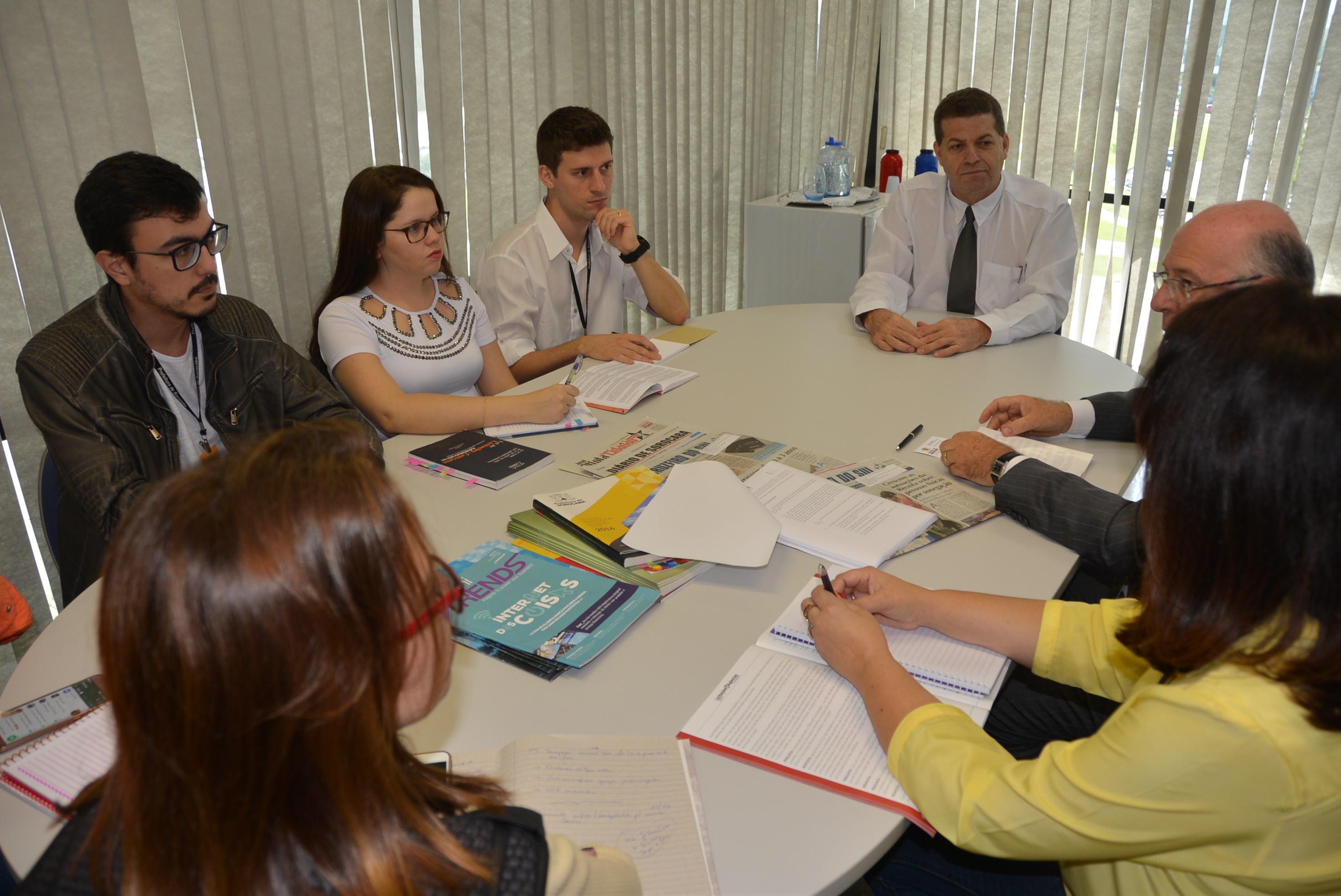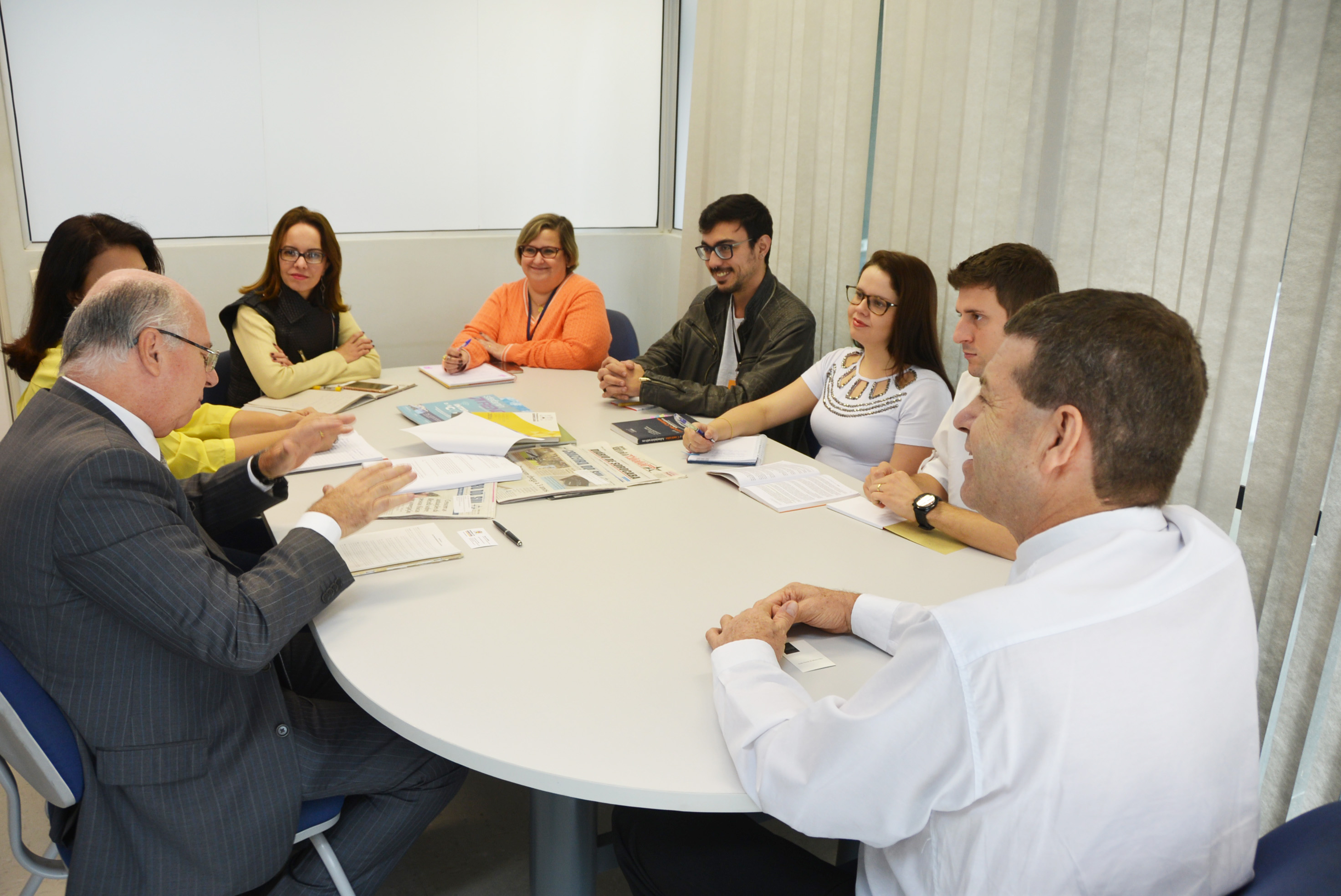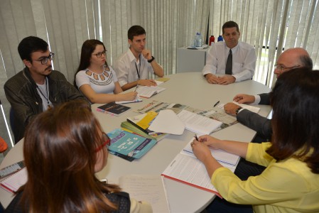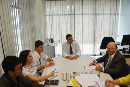 Oliveira Filho se reuniu com o secretário, a secretária-adjunta Fabiana Blaseck, a coordenadora de publicidade da pasta, Vanessa Valente; e os funcionários Felipe Hiraoka, Evelyn Moraes Feliciano e Renan Divino Vilas Boas, da Secretaria de Licitações e Contratos.