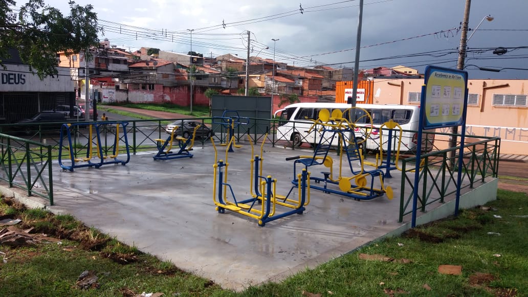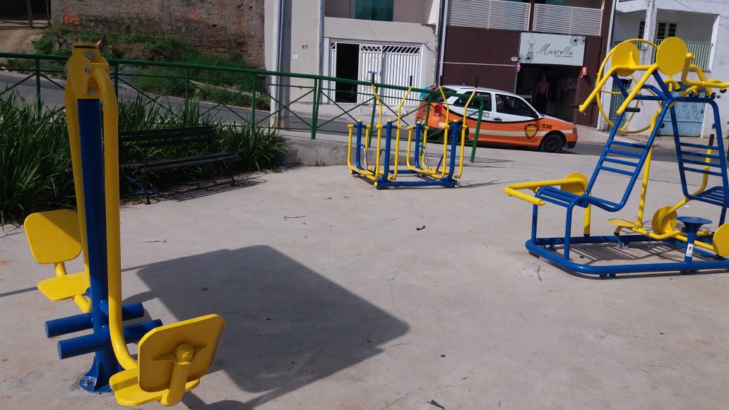 Todos esses espaços possuem uma placa explicativa com orientações sobre a funcionalidade de cada um dos seis aparelhos disponíveis, que são: o esqui, que aumenta a flexibilidade dos membros inferiores e melhora a função cardiorrespiratória; o simulador de caminhada, responsável pelo aumento da mobilidade e desenvolvimento da coordenação motora; o surf, um aparelho que melhora a flexibilidade dos membros inferiores; o simulador de cavalgada, que fortalece a musculatura dos membros inferiores e superiores, aumentando a função cardiorrespiratória; o aparelho de pressão de pernas, que fortalece a musculatura das coxas, da perna e dos quadris; e o multiexercitador, em que são trabalhados pernas e braços, no desempenho de flexões.