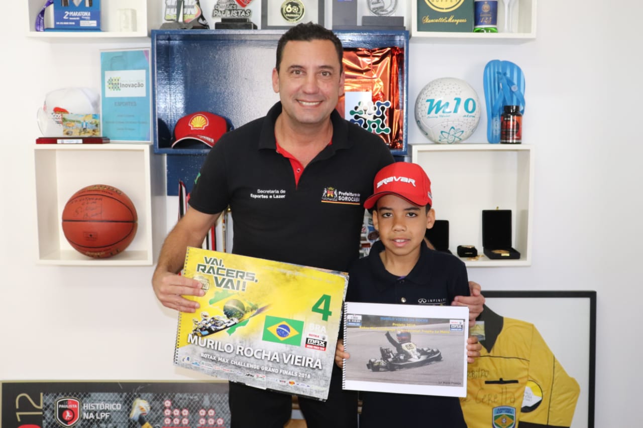 O Sorocabano Murilo Vieira da Rocha deve disputar em agosto, a Rotax Max Challenge Internacional Trophy Le Mans, na França. Acompanhado de sua mãe Gislaine, estiveram na manhã desta segunda-feira (29), na Secretaria de Esportes e Lazer (Semes), para conhecer o Museu dos Esportes. Na ocasião, também apresentaram ao secretário da pasta, Simei Lamarca, as competições planejadas até o final do ano.