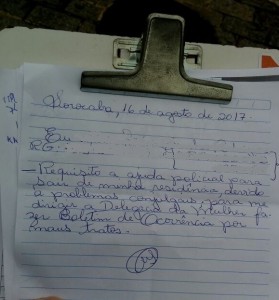 No papel ela afirma sofrer maus tratos e pede ajuda de um policial para ir até a delegacia. O suspeito negou as acusações mas, mesmo assim foi levado até ao DP para prestar depoimento e logo em seguido foi liberado. A vítima está sob os cuidados de um familiar e passa bem.
