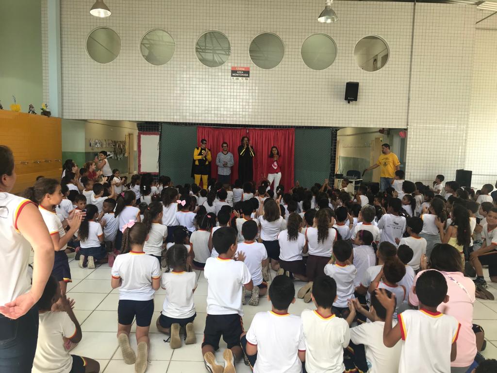 Na última quarta-feira (28), a Urbes – Trânsito e Transportes apresentou a peça “Super Amarelinho contra Velox” para 250 crianças da Escola Municipal “Ana Cecilia Falcato”.