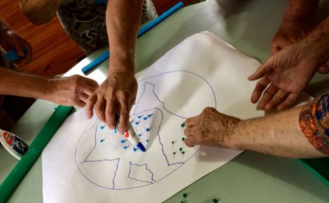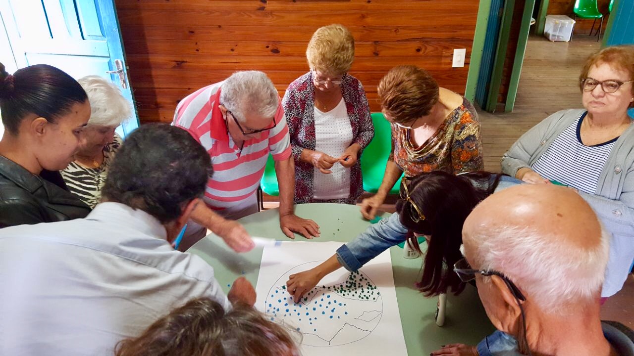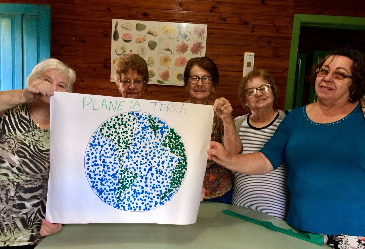 Para finalizar, o grupo participou de uma oficina artística da construção do planeta terra utilizando papel crepom, o que estimulou a criatividade e a coordenação motora dos idosos.