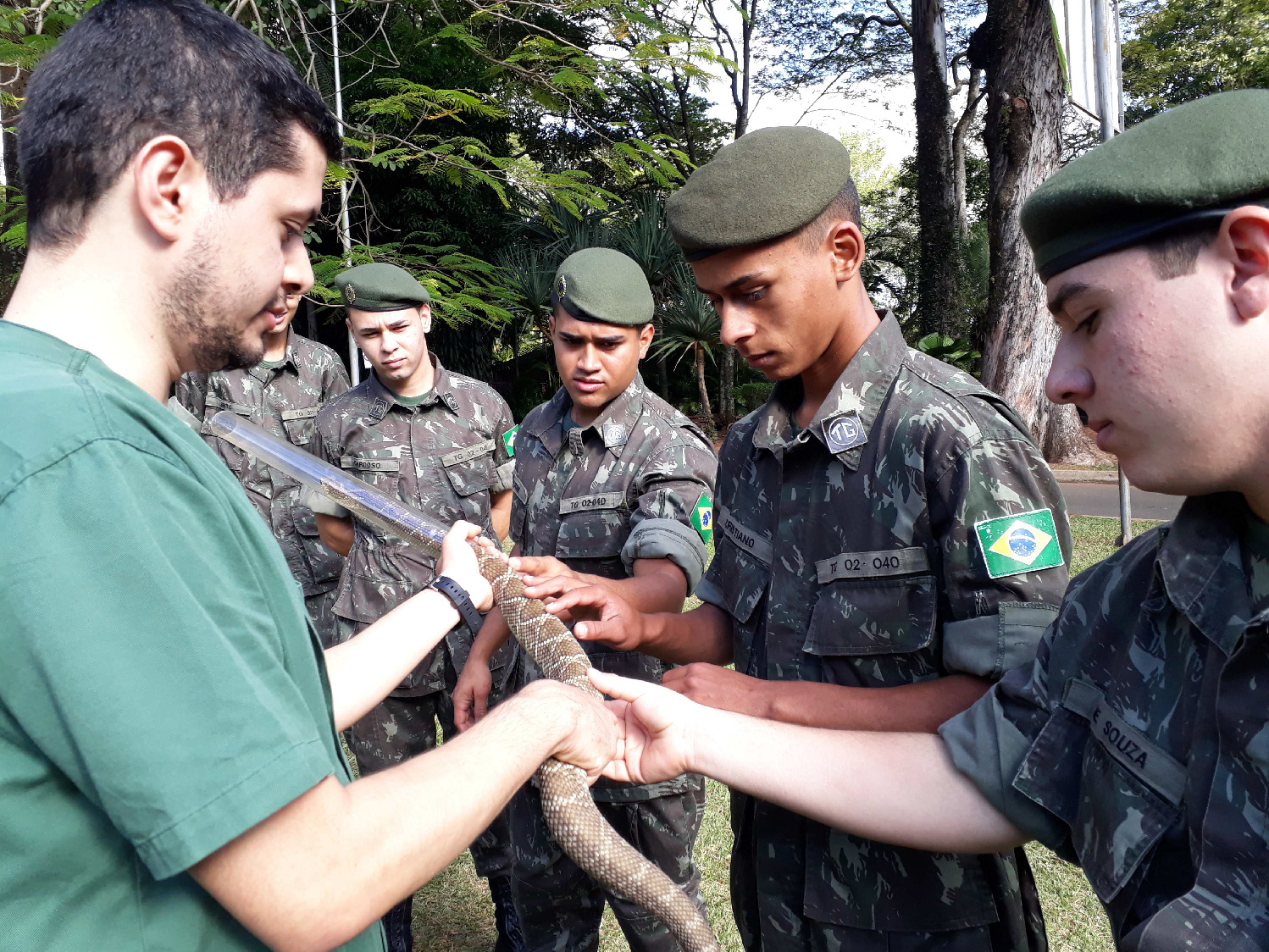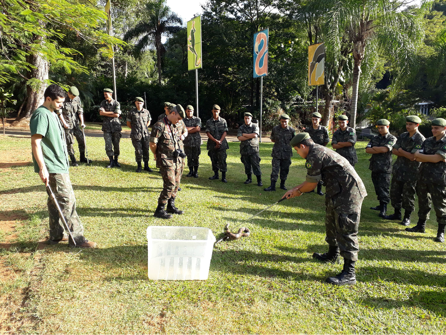 Tiro de Guerra recebe treinamento sobre contenção física de serpentes no zoo