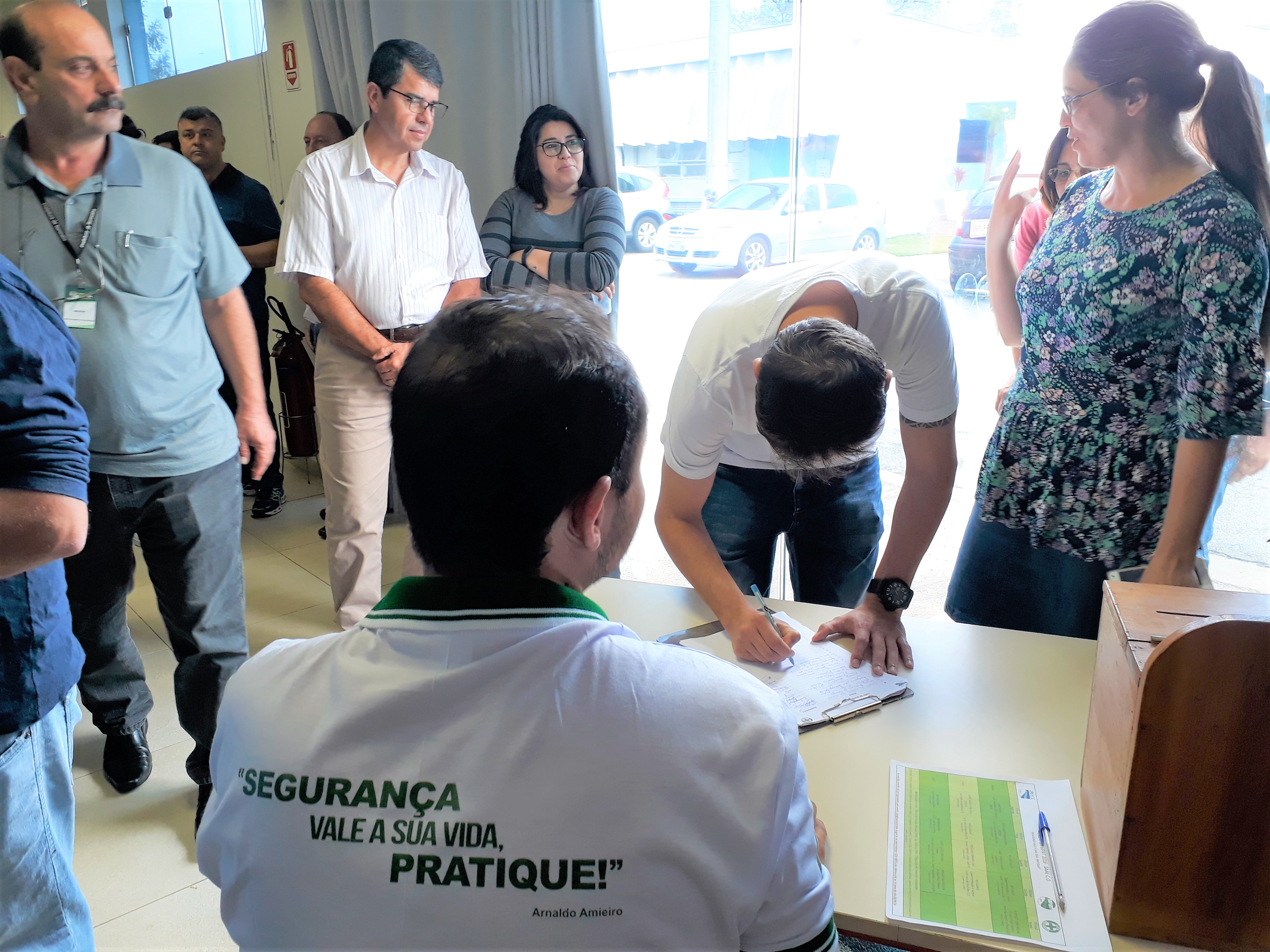 A diretora Administrativa e Financeira do Saae-Sorocaba, Tatiana Casagrande, agradeceu a participação dos colaboradores e o trabalho da Cipa na organização da Sipat 2018. O diretor-geral Ronald Pereira da Silva solicitou a todos que utilizem o e-mail cipa@saaesorocaba.sp.gov.br para registrar por escrito à Cipa sobre os eventuais riscos de acidente de trabalho, a fim das medidas corretivas serem adotadas com a maior brevidade possível. Também parabenizou o profissional do Saae-Sorocaba, Arnaldo Amieiro, autor da frase “Segurança vale a sua vida, pratique!”. Ela foi a vencedora do concurso cultural que escolheu o slogan da Sipat 2018 e o autor será premiado com vale compras.