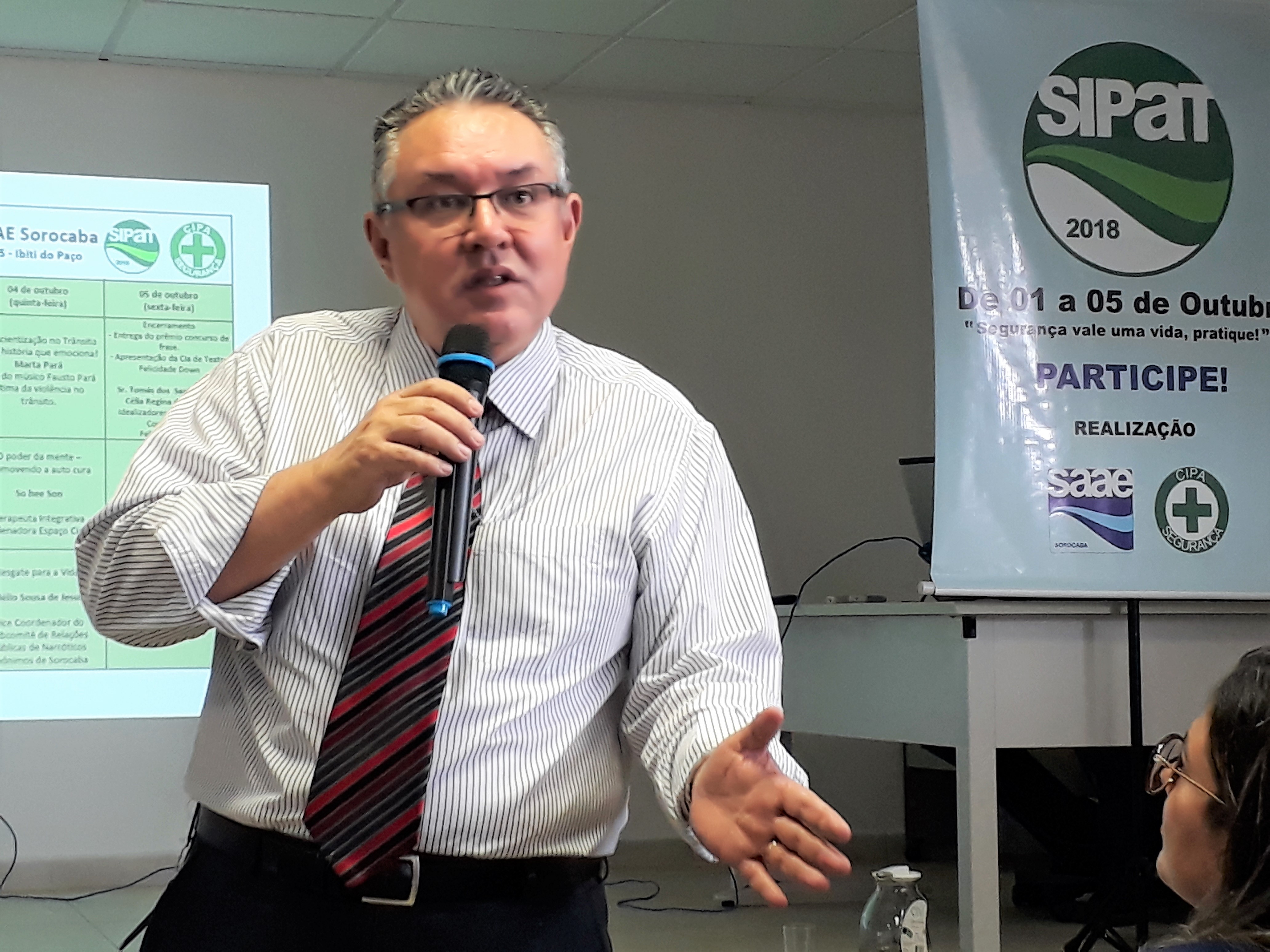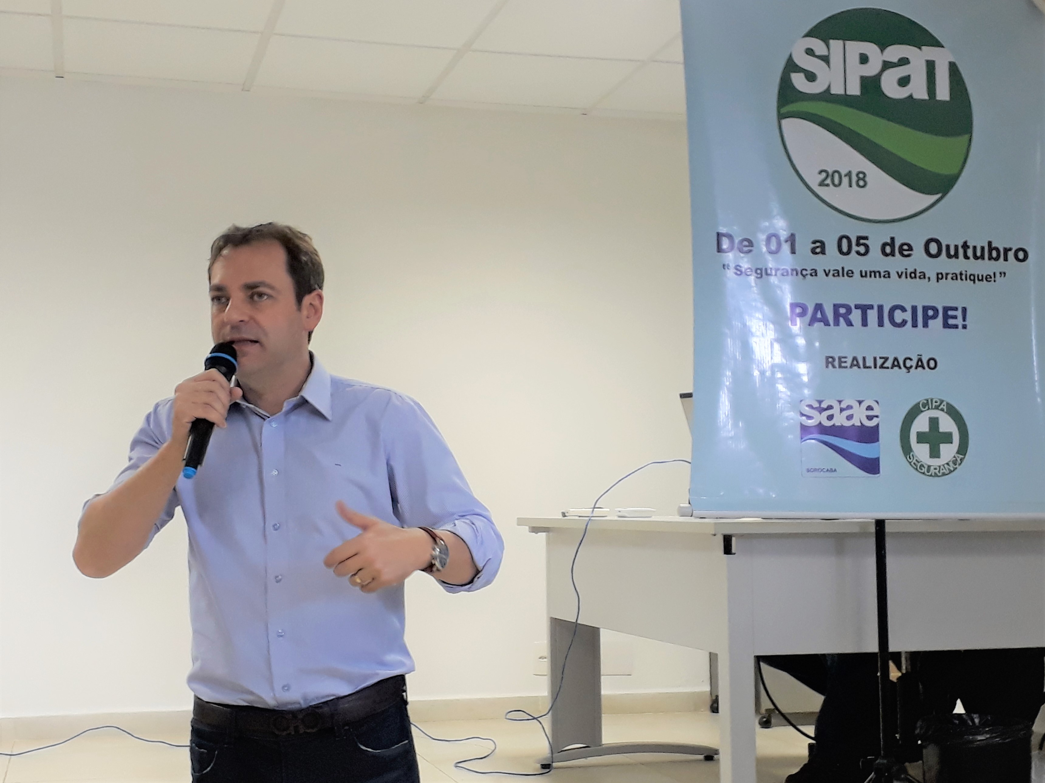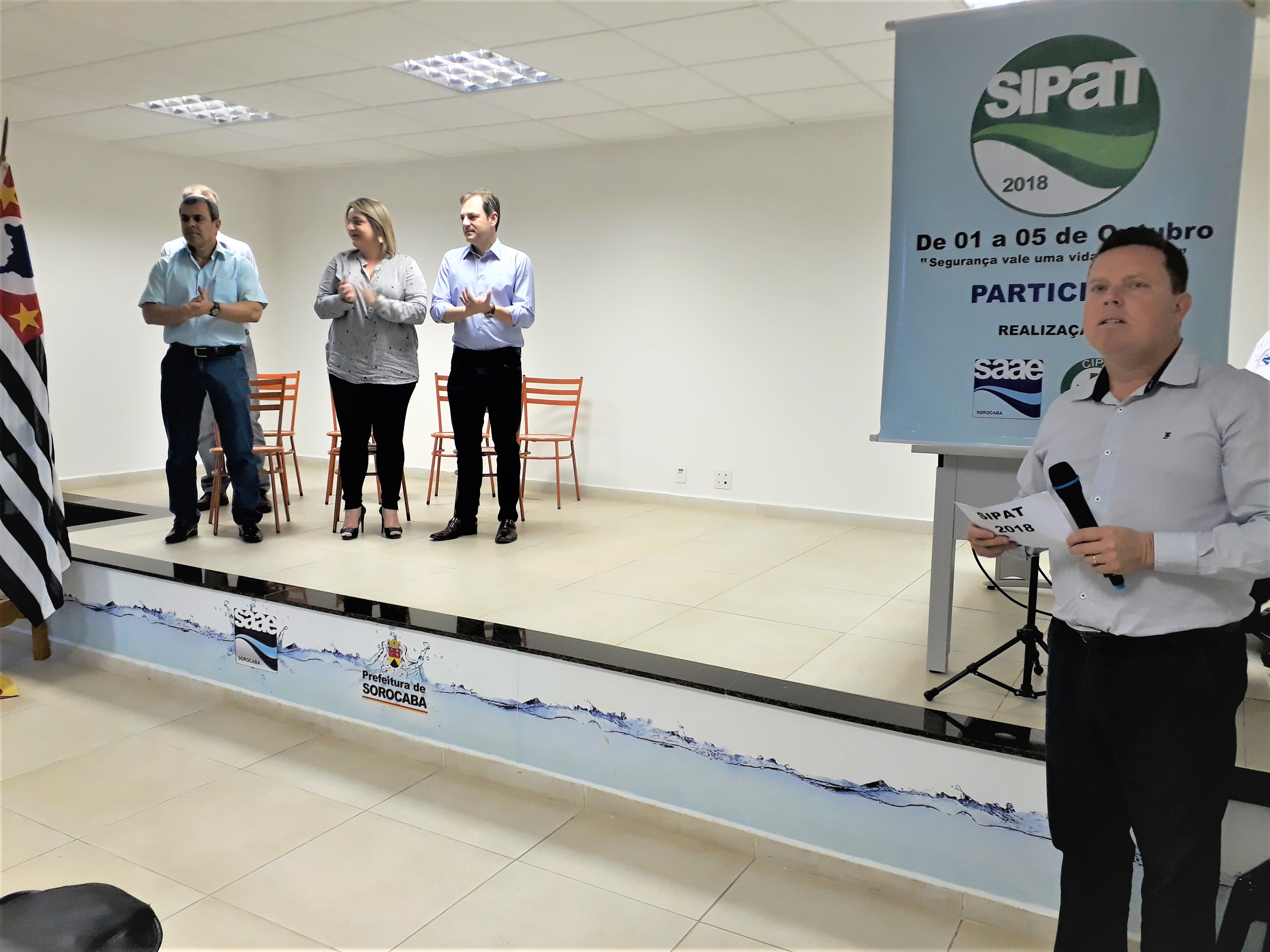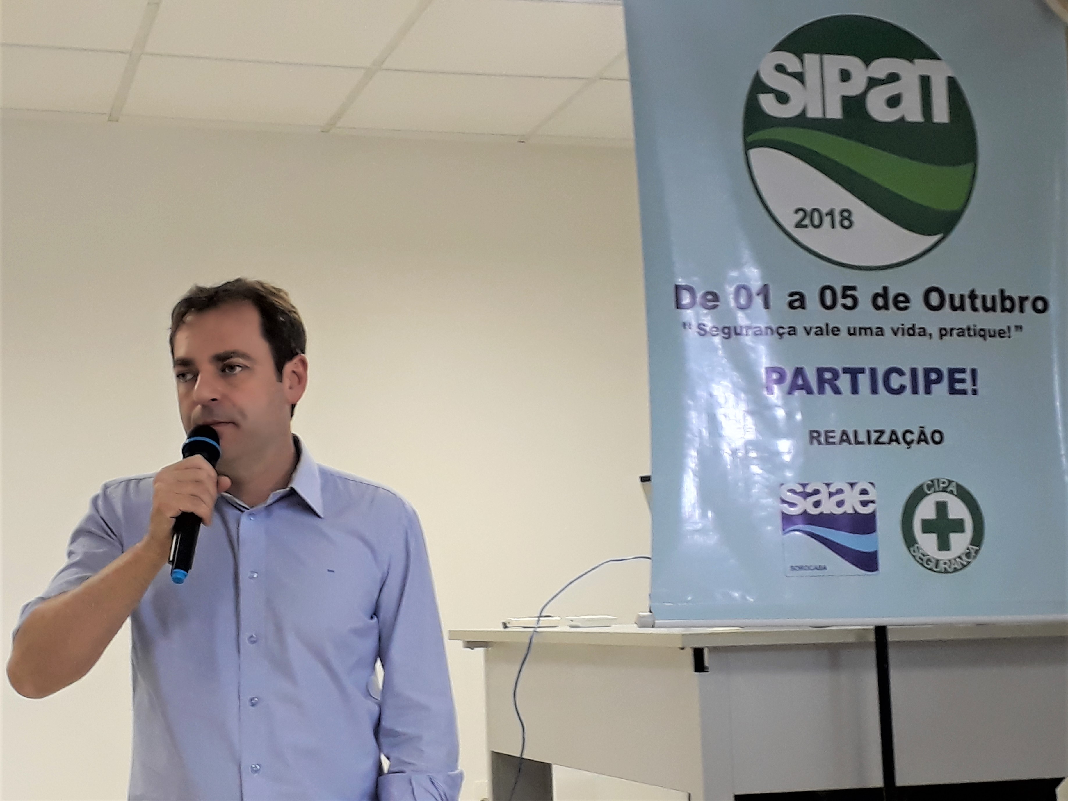 “Devemos trabalhar a cada dia com mais segurança. Aproximar ao máximo todos os conceitos teóricos abordados na Sipat 2018 com a e a execução prática de nossas tarefas”, orientou o diretor-geral do Saae-Sorocaba, Ronald Pereira da Silva, durante o início da Semana Interna de Prevenção de Acidentes do Trabalho (Sipat) do Saae-Sorocaba, na manhã desta segunda-feira (1º). A Sipat 2018 foi oficialmente aberta pela presidente da Comissão Interna de Prevenção de Acidentes (Cipa), Gêmina Pires, e segue com atividades diversificadas até a próxima sexta-feira (5). Pela primeira vez, com atividade nas manhãs, tardes e noites.