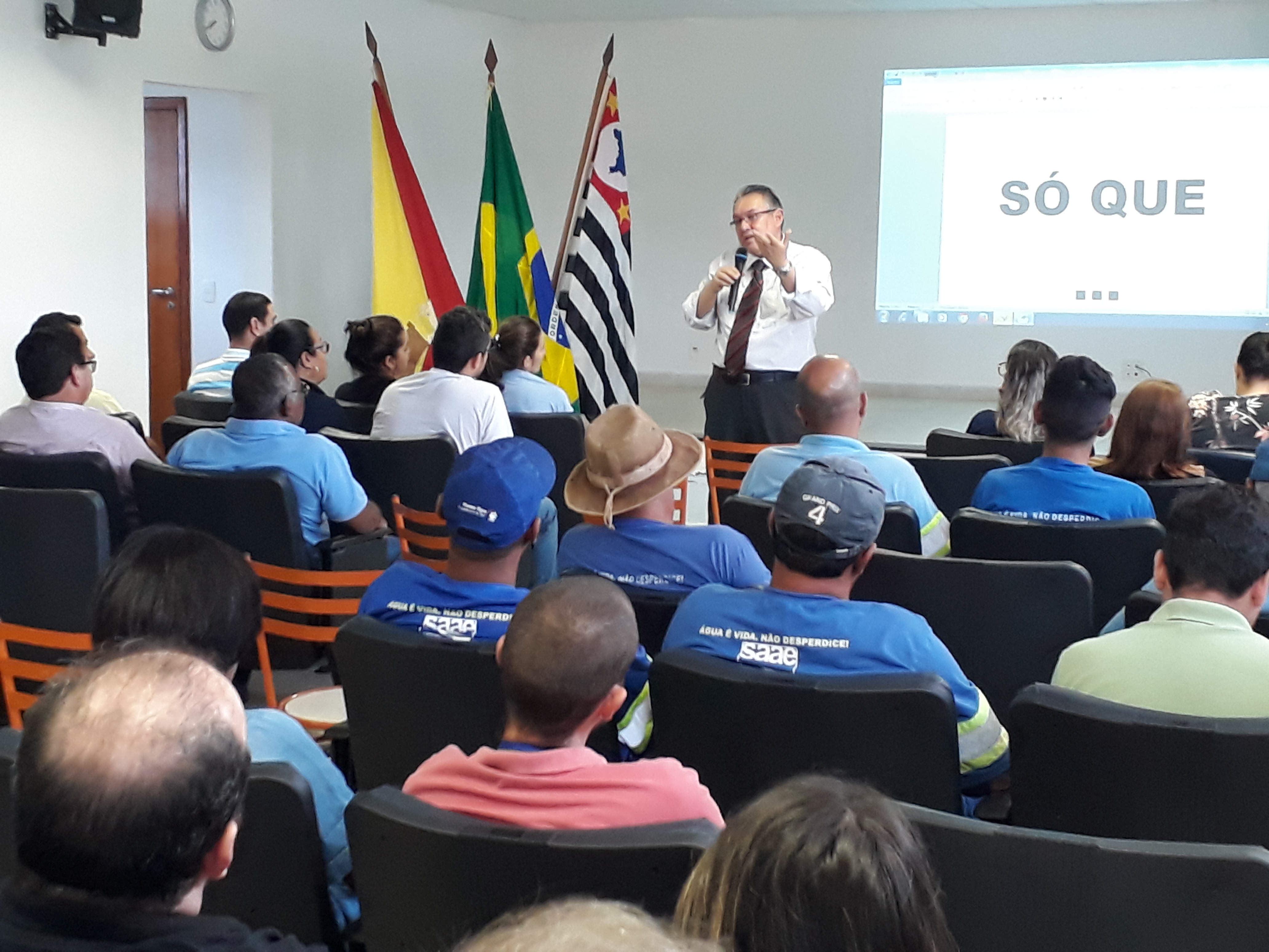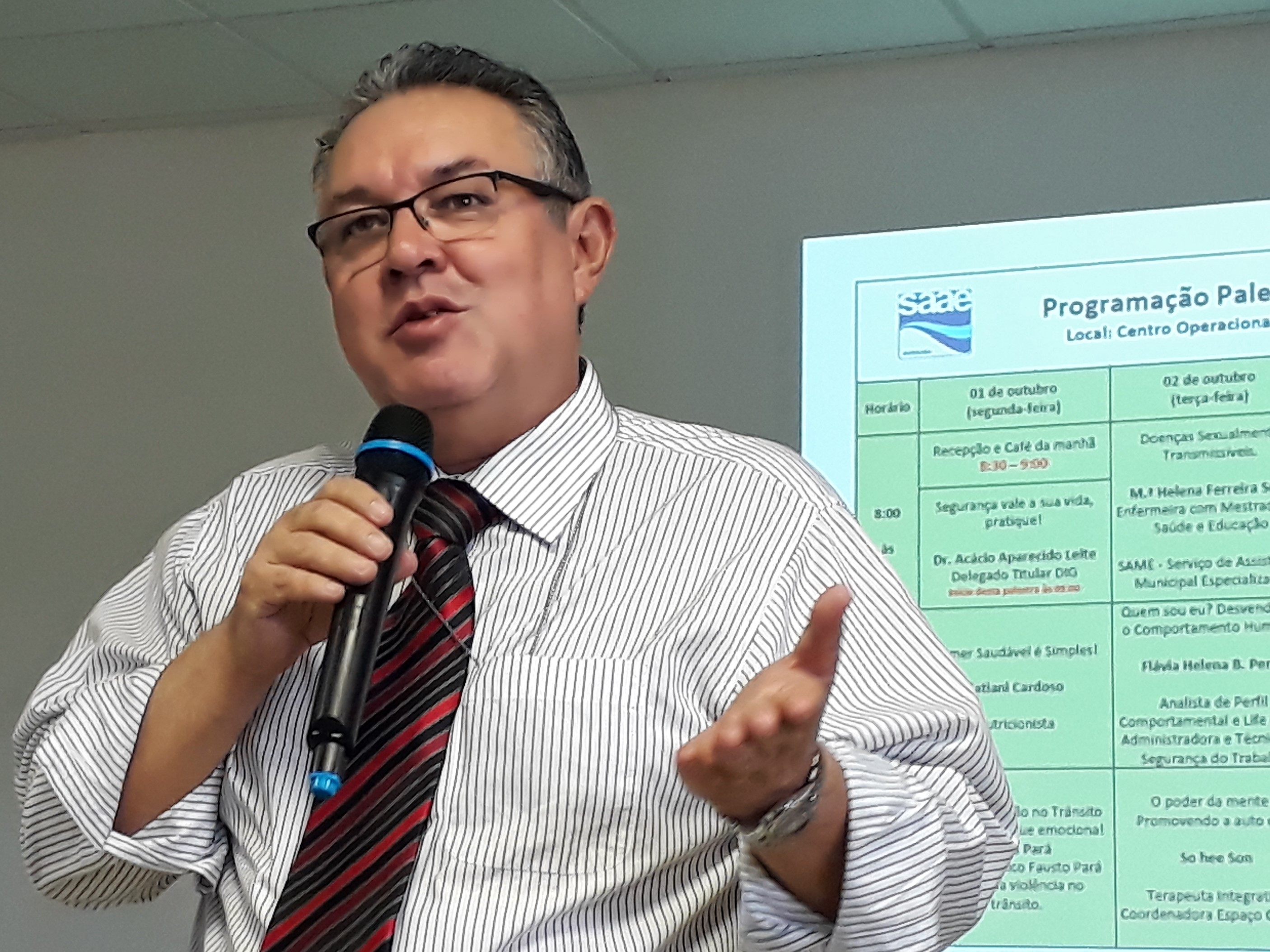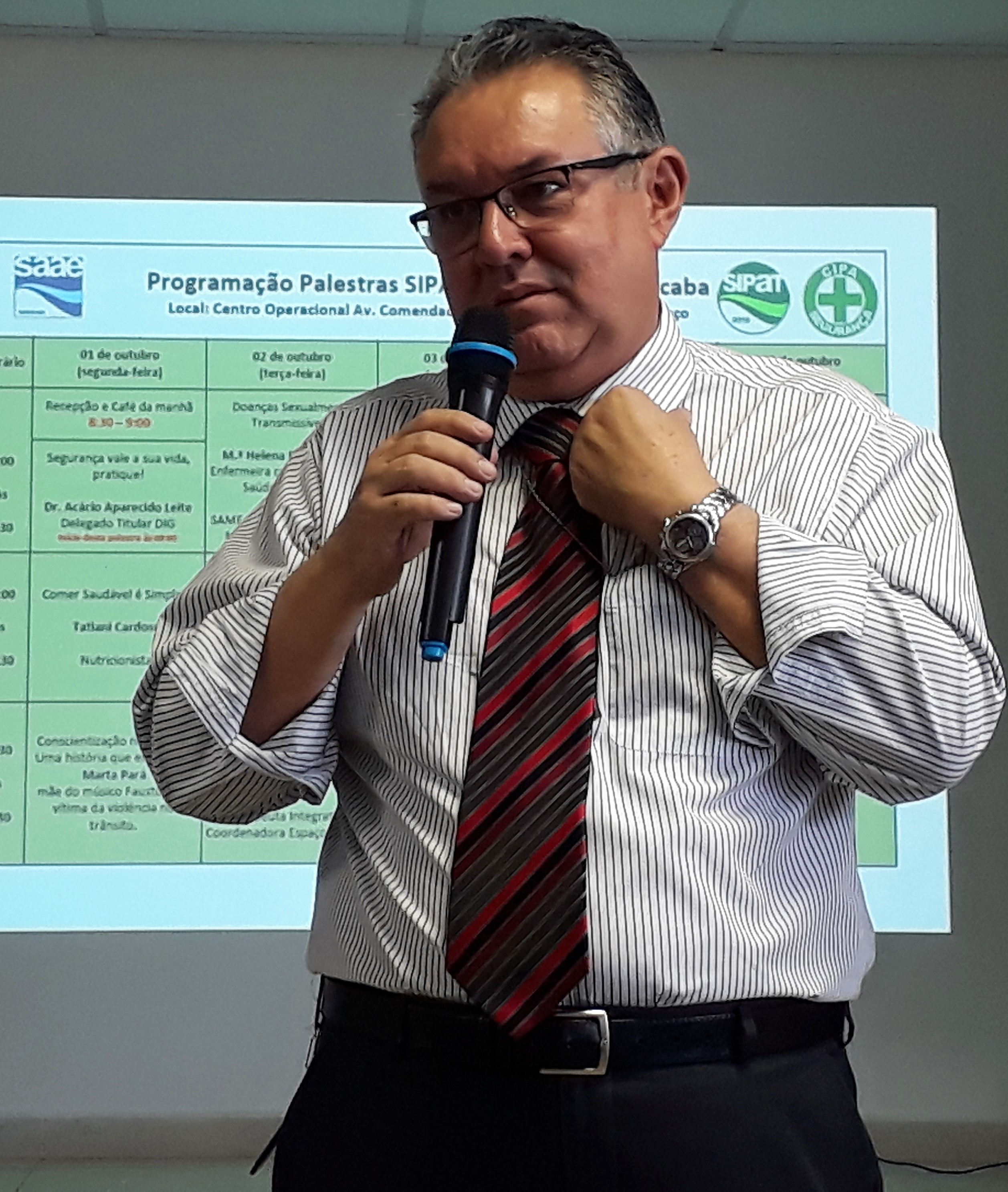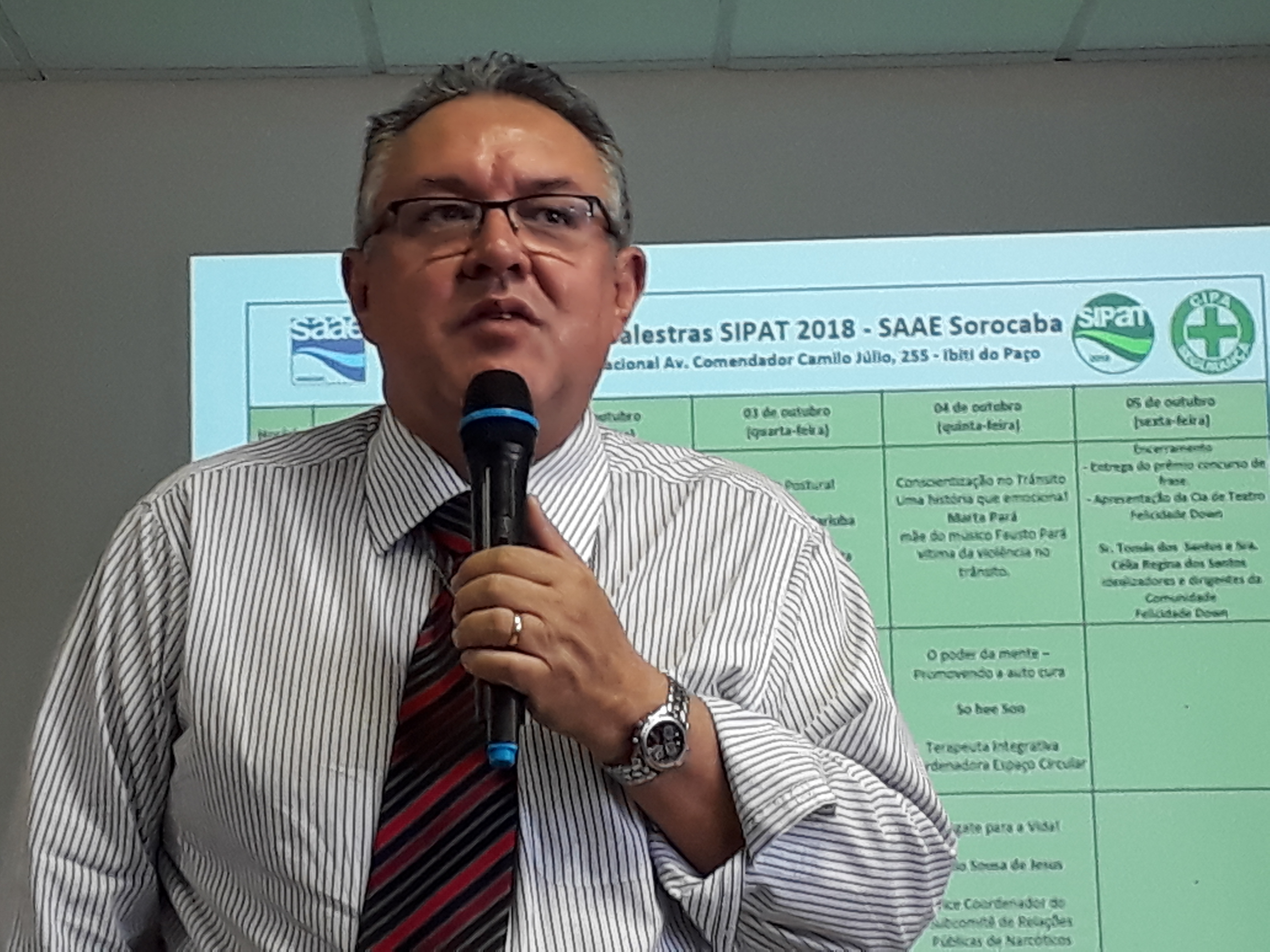 “Devemos trabalhar a cada dia com mais segurança. Aproximar ao máximo todos os conceitos teóricos abordados na Sipat 2018 com a e a execução prática de nossas tarefas”, orientou o diretor-geral do Saae-Sorocaba, Ronald Pereira da Silva, durante o início da Semana Interna de Prevenção de Acidentes do Trabalho (Sipat) do Saae-Sorocaba, na manhã desta segunda-feira (1º). A Sipat 2018 foi oficialmente aberta pela presidente da Comissão Interna de Prevenção de Acidentes (Cipa), Gêmina Pires, e segue com atividades diversificadas até a próxima sexta-feira (5). Pela primeira vez, com atividade nas manhãs, tardes e noites.