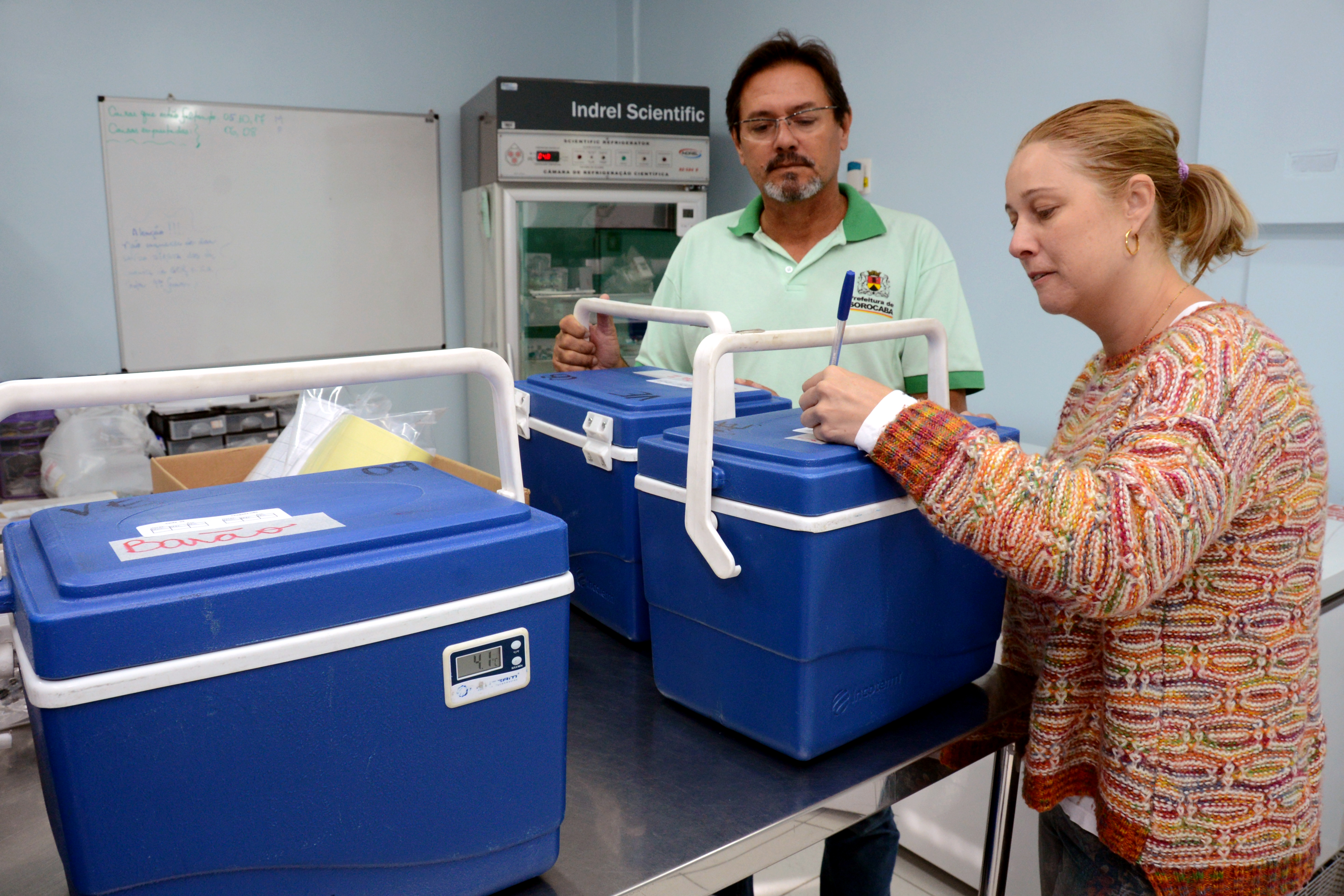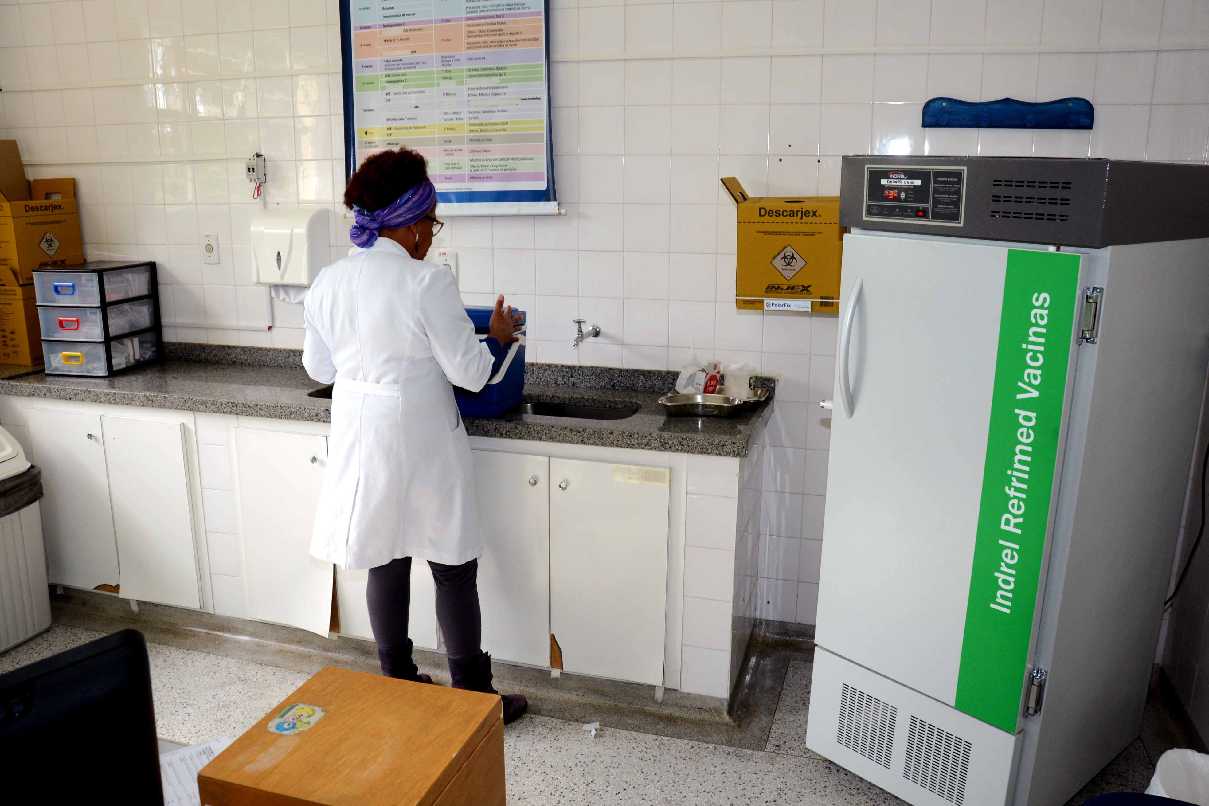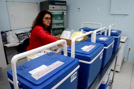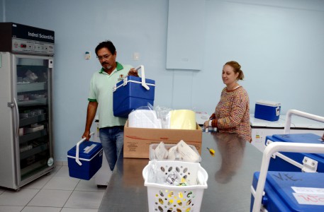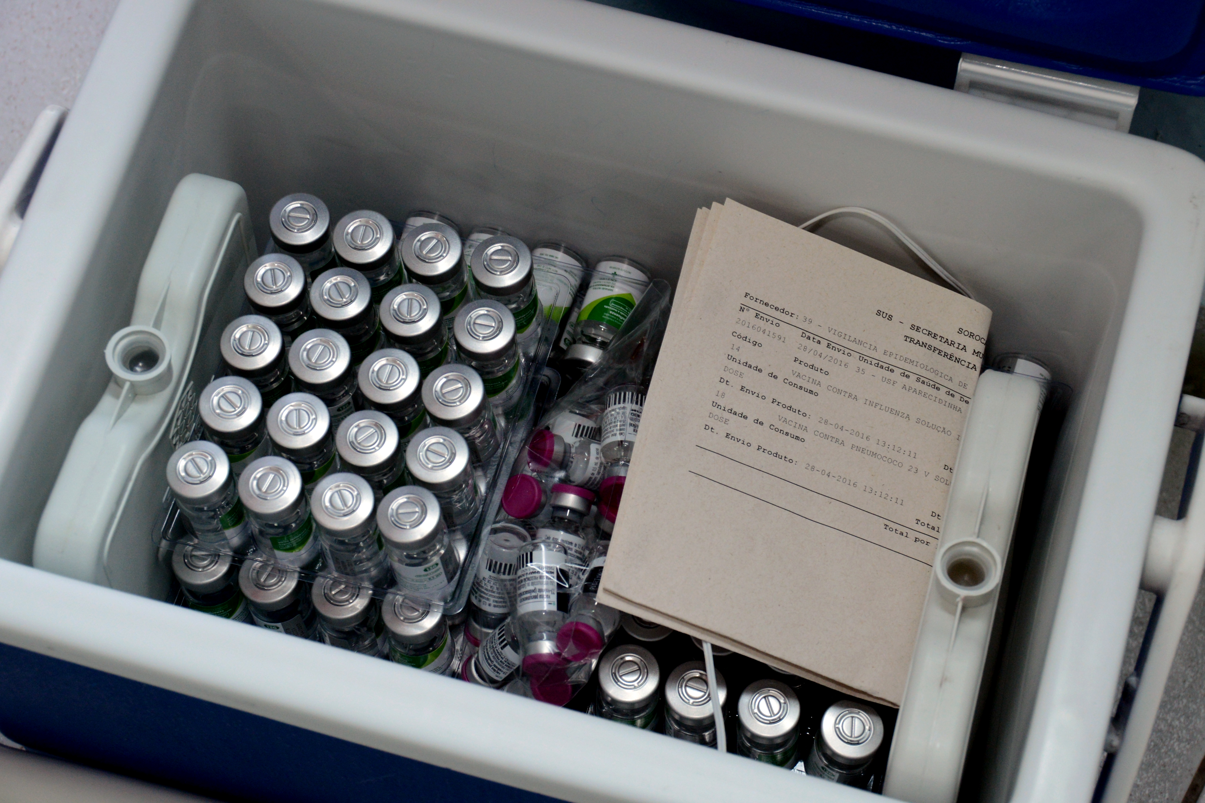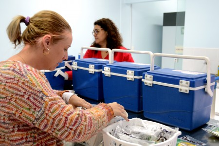 A distribuição das vacinas contra a Influenza às UBSs ocorreu nesta sexta-feira (29). Pela manhã, 16 unidades foram atendidas e, à tarde, outras 15. De acordo com Daniela, para isso o quadro de motoristas dobrou. “Fora os dois que trabalham para nós durante a semana, a DVE disponibilizou mais dois”, ressalta. Todos os cuidados foram adotados no transporte e armazenamento. “As caixas nas quais enviamos as doses às UBSs possuem termômetros e climatizadores. A temperatura deve ficar entre 2 e 8 graus.” Além disso, na Central Rede de Frio, onde estavam estocadas todas as vacinas, o controle da temperatura das geladeiras é feito duas vezes por dia.