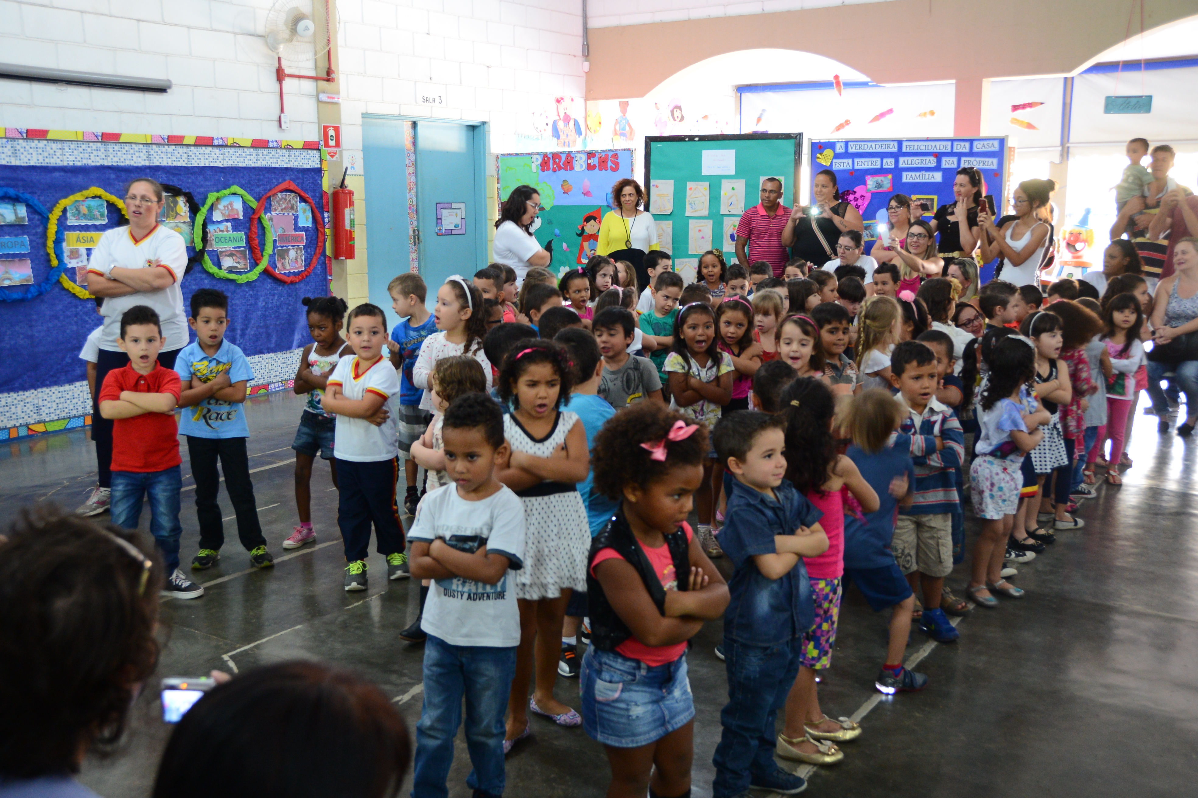 Com a proposta de integrar as famílias, o tema foi trabalhado em sala de aula nas duas últimas semanas. Nesse período, as crianças prepararam painéis com fotos, trabalhos de colagem e pintura destacando a participação familiar, além de preparar uma apresentação musical.
