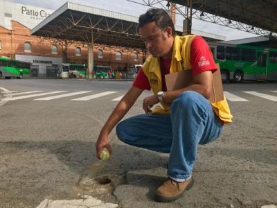 “Procuramos e retiramos todos os possíveis criadouros, verificamos se os furos no fundo das lixeiras estão desobstruídos e nos locais que acumulam água e são impossíveis de serem eliminados nós colocamos produtos químicos, como sabão líquido por exemplo”, explica Scarpelli. A comissão também trabalha a conscientização dos profissionais da Urbes e sociedade por meio de faixas e distribuição de panfletos, como inclusive é feito quando há blitzes no trânsito com a equipe de Educação para o Trânsito da Urbes.