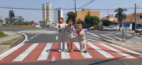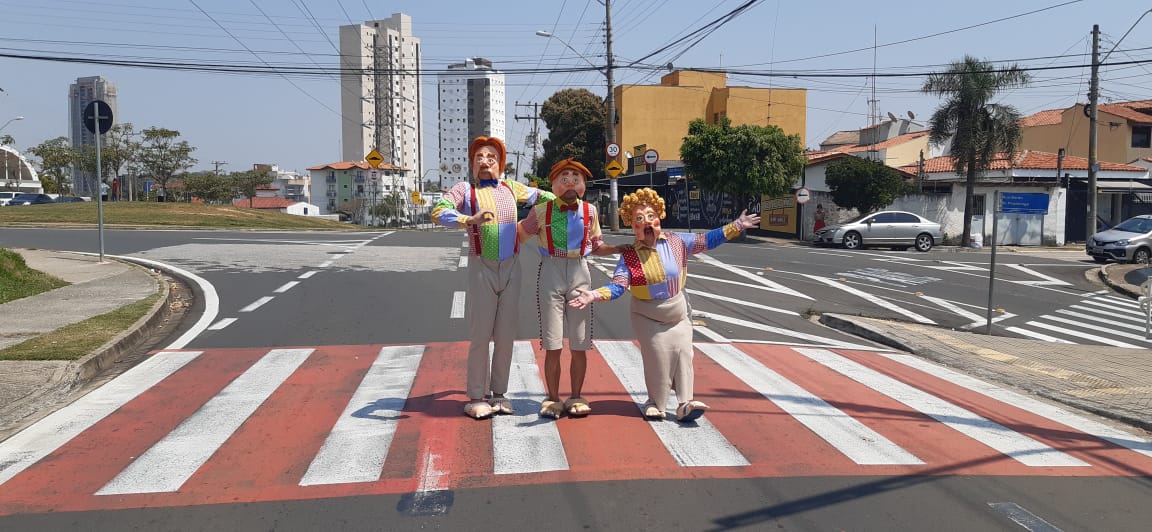 A família Pedonale faz uma ação itinerante. Durante o percurso, que nesta quarta-feira (18) percorrerá a Rua Quinze de Novembro, no Centro, os personagens demonstrarão os perigos e as atitudes seguras vivenciadas pelo pedestre.