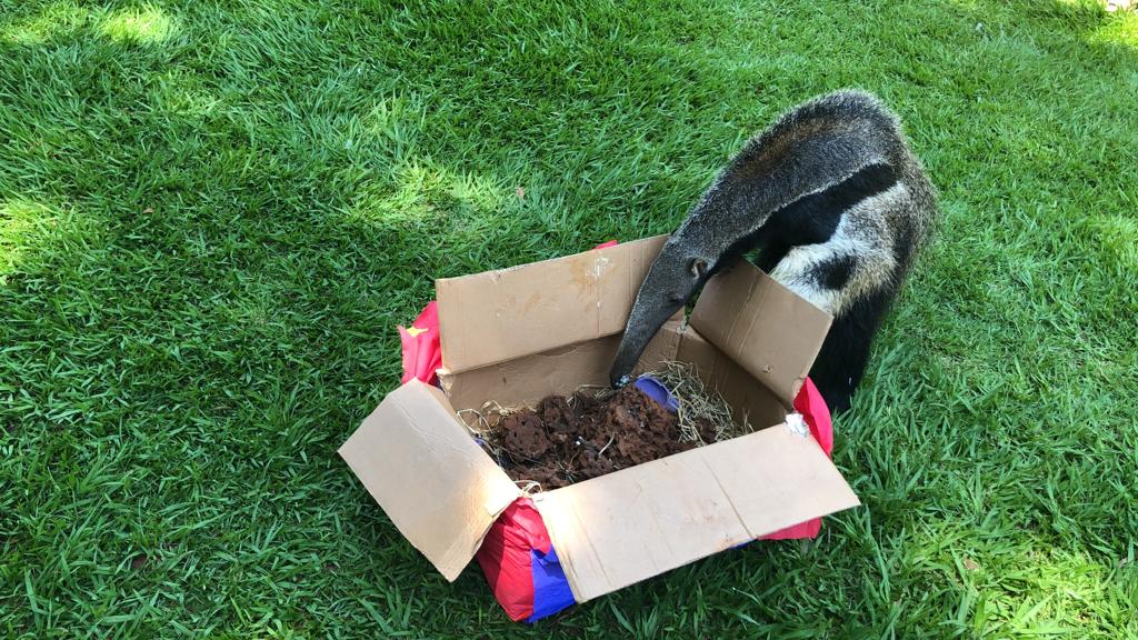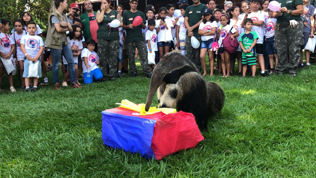 Embalado como presente numa caixa de papelão, Ziraldo ganhou um cupinzeiro. A atividade ocorreu no gramado do zoo, em frente ao lago. As pessoas puderam ouvir a história do tamanduá, que nasceu no zoo pesando apenas 1,5 kg e foi abandonado pela mãe, e ainda saber mais sobre a espécie, que é exclusiva da fauna brasileira e está classificada como ‘vulnerável’ de extinção pela União Internacional para Conservação da Natureza e dos Recursos Naturais (IUCN).