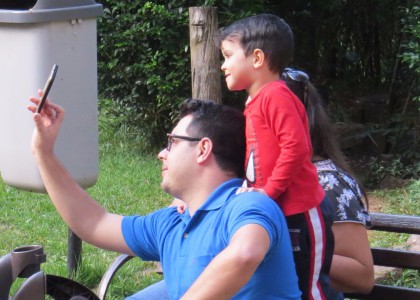 Dezenas de pessoas não perderam a oportunidade de registrar o passeio, por todos os lados tinha alguém fazendo selfies, fotografando os animais e as crianças que corriam alegres pelo parque.