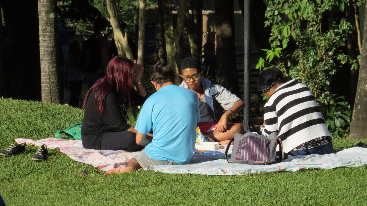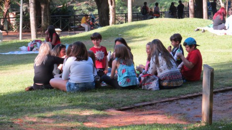 Famílias se reuniram para o piquenique da tarde e alguns casais aproveitaram para descansar e namorar ao ar livre.